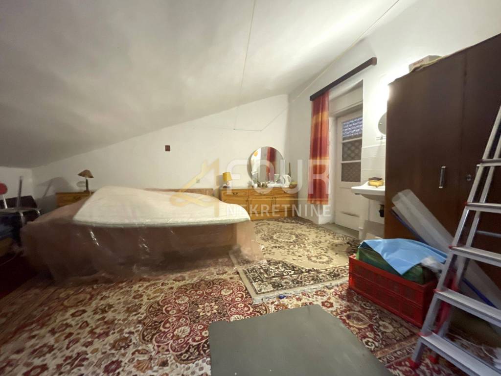 Potkrovlje pruža dodatni potencijal s nekorištenom prostorijom i izlazom na balkon od 8m2 s kojeg se pruža pogled na more.
