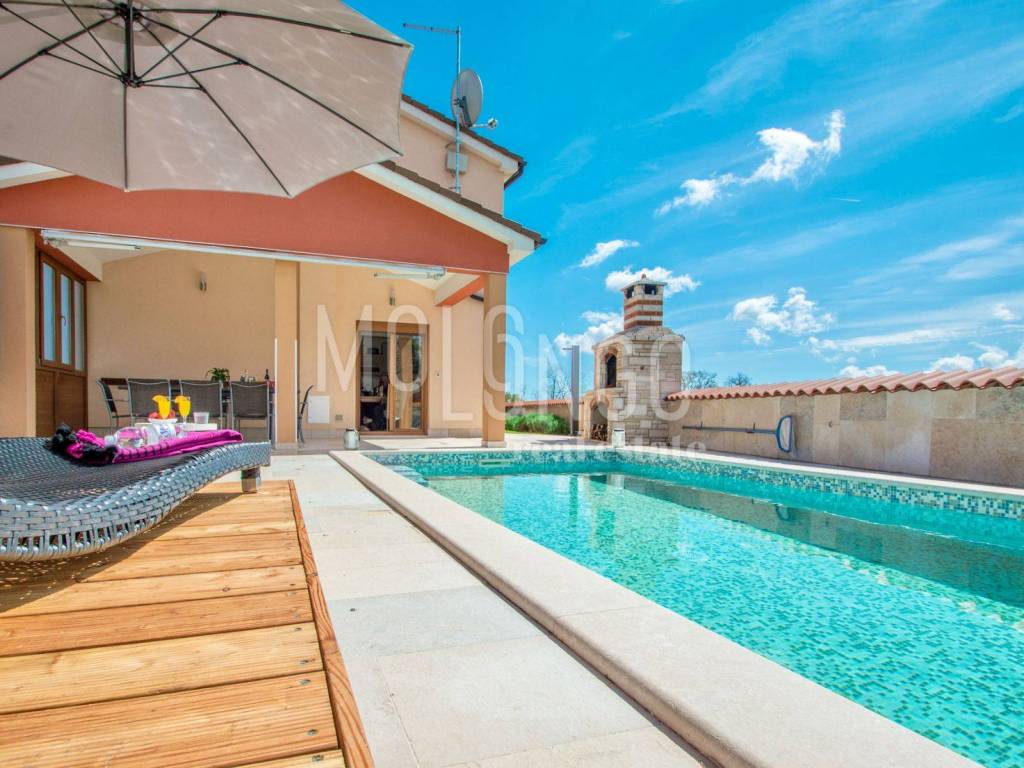 Udaljena nedaleko od prvih plaža, ova samostalna katnica nudi ponajbolje od života u mirnom okruženju. Kuća ima predivan dnevni prostor kojim prevladava uređeni kamin koji znatno doprinosi ugodnom boravku tijekom cijele godine. Osim toga, u cijeloj kući provedeno je podno grijanje, a glavne prostorije imaju klima uređaje. Dnevni boravak dijeli veliku prostoriju s kuhinjom i blagovaonom iz koje se izlazi na osunčanu terasu. Podjednaku dozu ugode nudi vanjski prostor koji uključuje terasu, roštilj, sunčalište i grijani bazen koji su pogodni za bezbrižna druženja s najbližima. S obzirom na to da kuća ima četiri spavaće sobe, dvije kupaonice, garažu i vanjski parking, ova nekretnine je idealna za povremeni odmor obitelji ili grupe prijatelja. Slobodno kontaktirajte agenta za sva dodatna pitanja i dogovor termina razgleda.