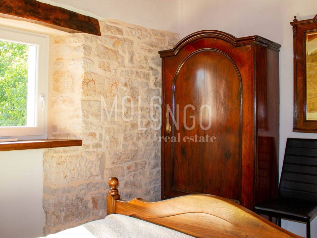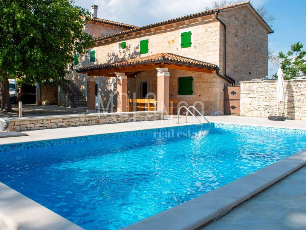 Na prodaju je predivna kamena kuća s bazenom i velikom okućnicom nedaleko od Žminja. Ova prostrana nekretnina s ukupno 220 m2 nudi udobnost i mogućnosti za ugodan život ili poslovne aktivnosti.