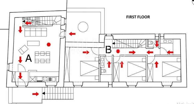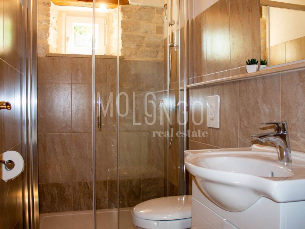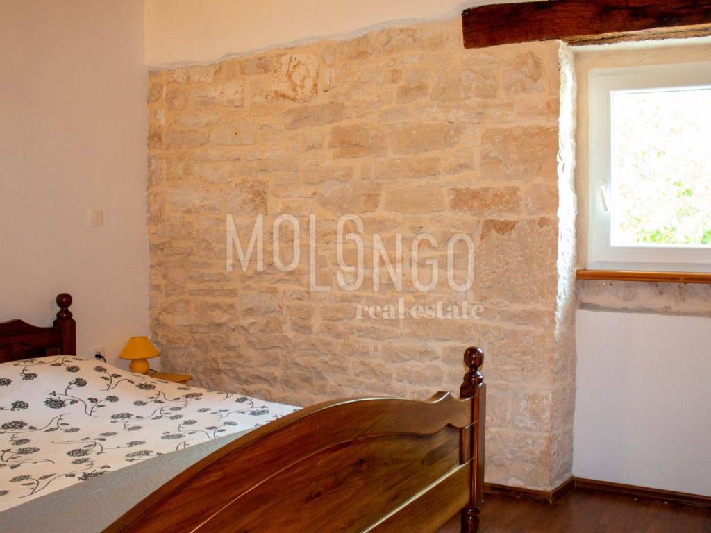 Uređeni dio kuće obuhvaća prizemlje i prvi kat. Prizemlje kuće sastoji se od dnevnog boravka, blagovaonice, potpuno opremljene kuhinje i kupaonice. Na prvom katu nalaze se tri lijepo uređene, klimatizirane spavaće sobe, dvije kupaonice i dodatni WC.