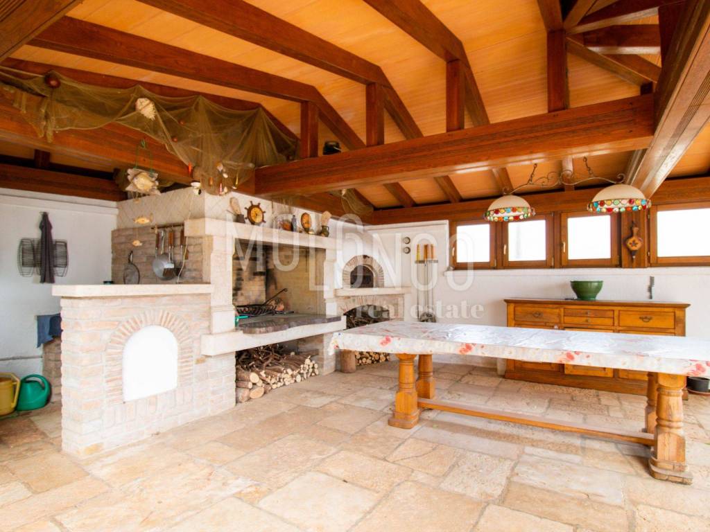 Kuća se prostire na parceli od 1191 m2, dok sama kuća zauzima 250 m2 i proteže se na 2 kata s 2 zasebna stana. U prizemlju kuće nalazi se stan s odvojenim ulazom, dvije spavaće sobe, WC, kupaonica, kuhinja te dnevni boravak s izlazom na terasu s prekrasnim pogledom na more i dvorište. Na katu kuće nalazi se drugi stan s zasebnim ulazom, dvije spavaće sobe, svaka s vlastitom kupaonicom, kuhinja i prostrani dnevni boravak s izlazom na veliku terasu koja pruža zadivljujući pogled. U dvorištu kuće također se nalazi ljetna natkrivena kuhinja s kaminom, idealna za uživanje u društvu obitelji i prijatelja. Kuća također ima natkriveni parking i dva podruma.