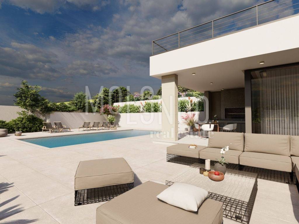 Prodaje se spektakularna vila s bazenom i nevjerojatnim panoramskim pogledom na more. Ova prekrasna vila obuhvaća dvije etaže za potpuni luksuzni doživljaj.