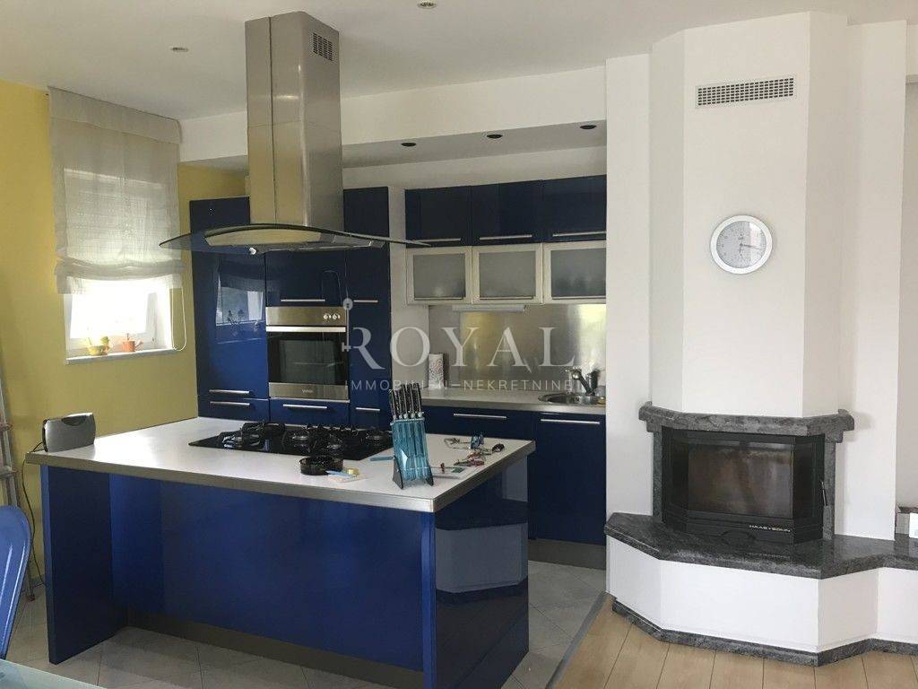 Etaža je površine 130 m2 stambenog prostora, a sastoji se od tri spavaće sobe, tri kupaonice, velike kuhinje i dnevnog boravka sa kaminom .Stan je uređen i kompletno namješten, luksuzno i moderno, zadnja renovacija namještaja 2019.g.
