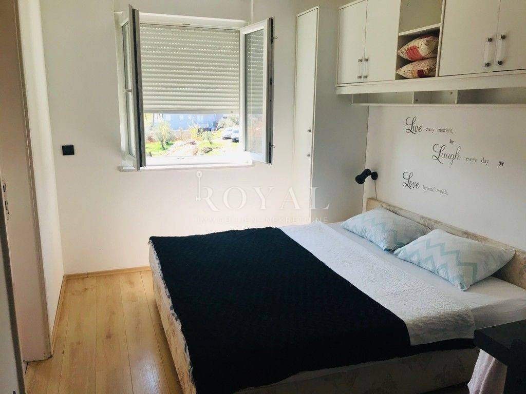 Glavna kupaonica ima wirpool kutnu katu i dvostruke umivaonike sa ogromnim ogledalom, ugradbeni ormari viisoke kvalitete su po cijelom stanu. P
