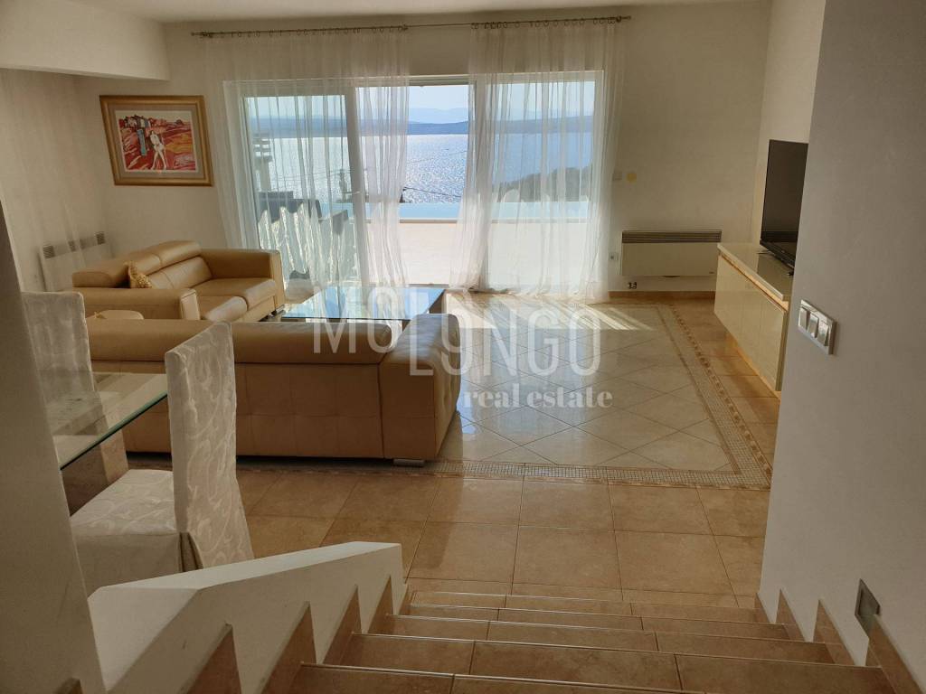 Vila očarava svojom južnom orijentacijom, pružajući panoramski pogled na more. Izgrađena je 2011. godine s naglaskom na modernoj arhitekturi i visokokvalitetnoj gradnji. Raspoređena je na tri etaže, pružajući prostran prostor i udobnost. Prizemlje je oblikovano kao 'open space' prostor koji objedinjuje dnevni boravak, kuhinju i blagovaonicu, te također sadrži ostavu i toalet. Iz prizemlja se izlazi na terasu i prekrasan bazen, stvarajući skladan prostor za opuštanje i uživanje. Unutarnjim stepenicama dolazi se do prvog kata gdje su smještene tri spavaće sobe, kupatilo i balkon, dok se na najvišoj etaži nalazi 'master' spavaća soba s prostranim kupatilom i terasom. Pogled na more pruža se iz svih prostorija vile, dodajući čaroliju boravku u njoj.