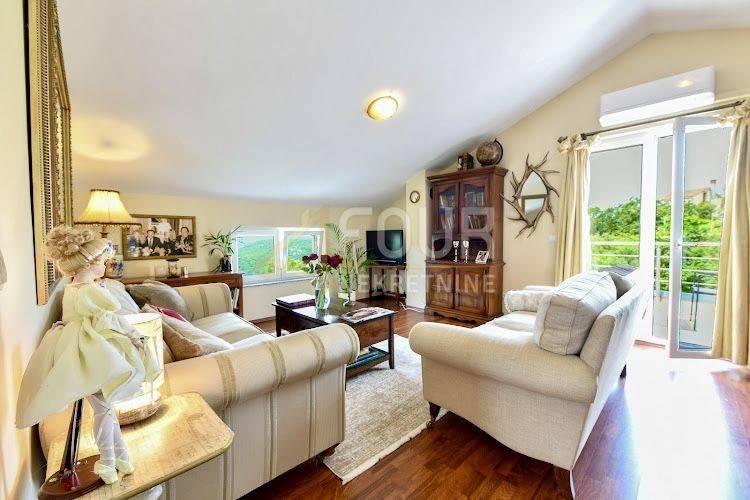 Okućnica je pažljivo uređena, s bazenom, dva roštilja i prekrasnim zelenilom, a terase nude zadivljujući pogled na more i prirodu.
