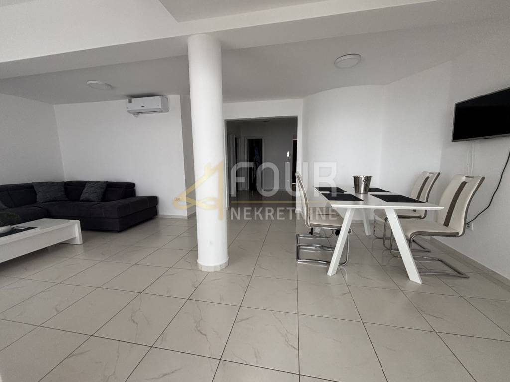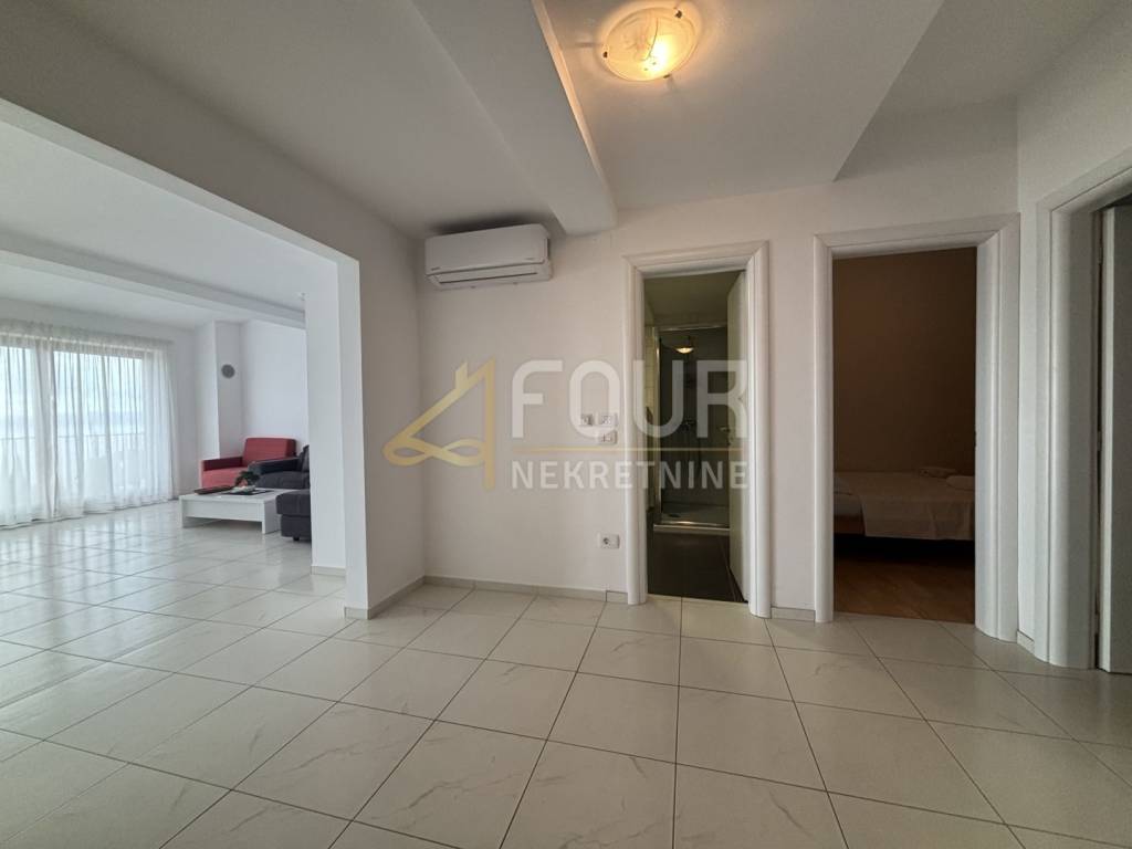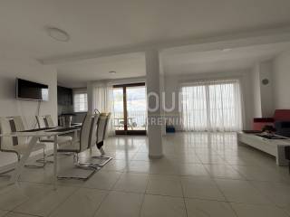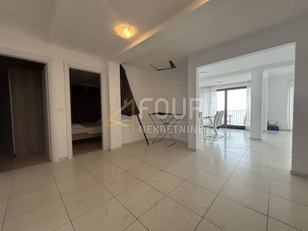 Na prodaju je prostrani stan s galerijom ukupne površine 195.93 m2, smješten svega 100 metara od mora, s pogledom na more i obiljem prirodnog svjetla zahvaljujući južnoj orijentaciji dnevnih prostorija.