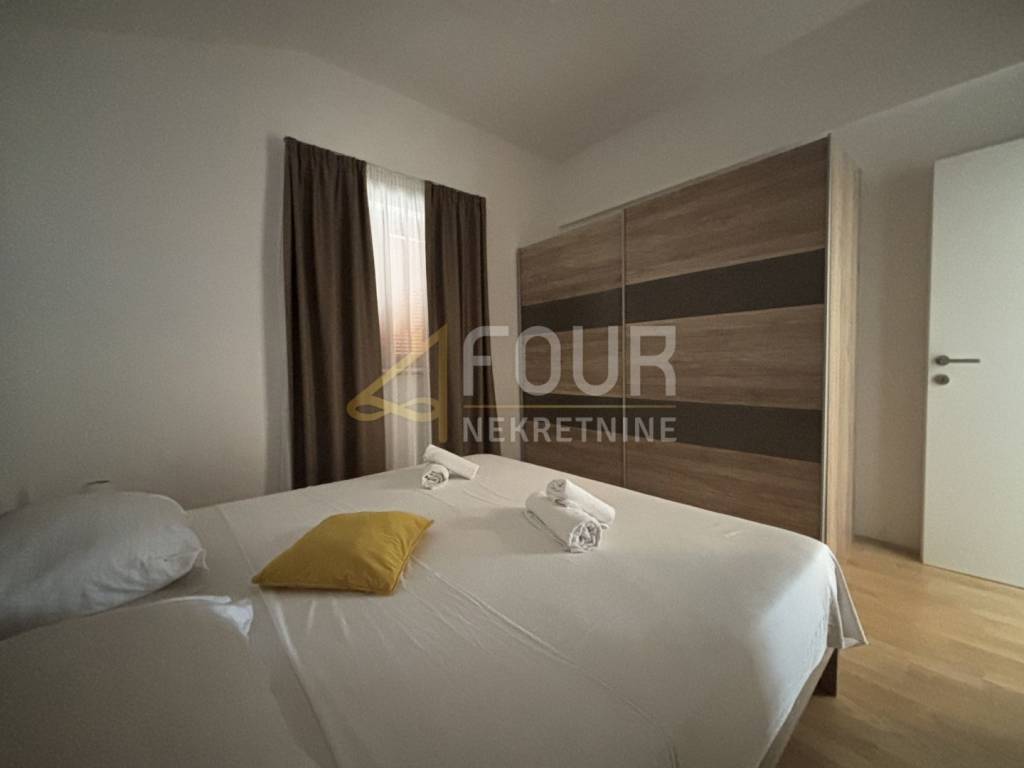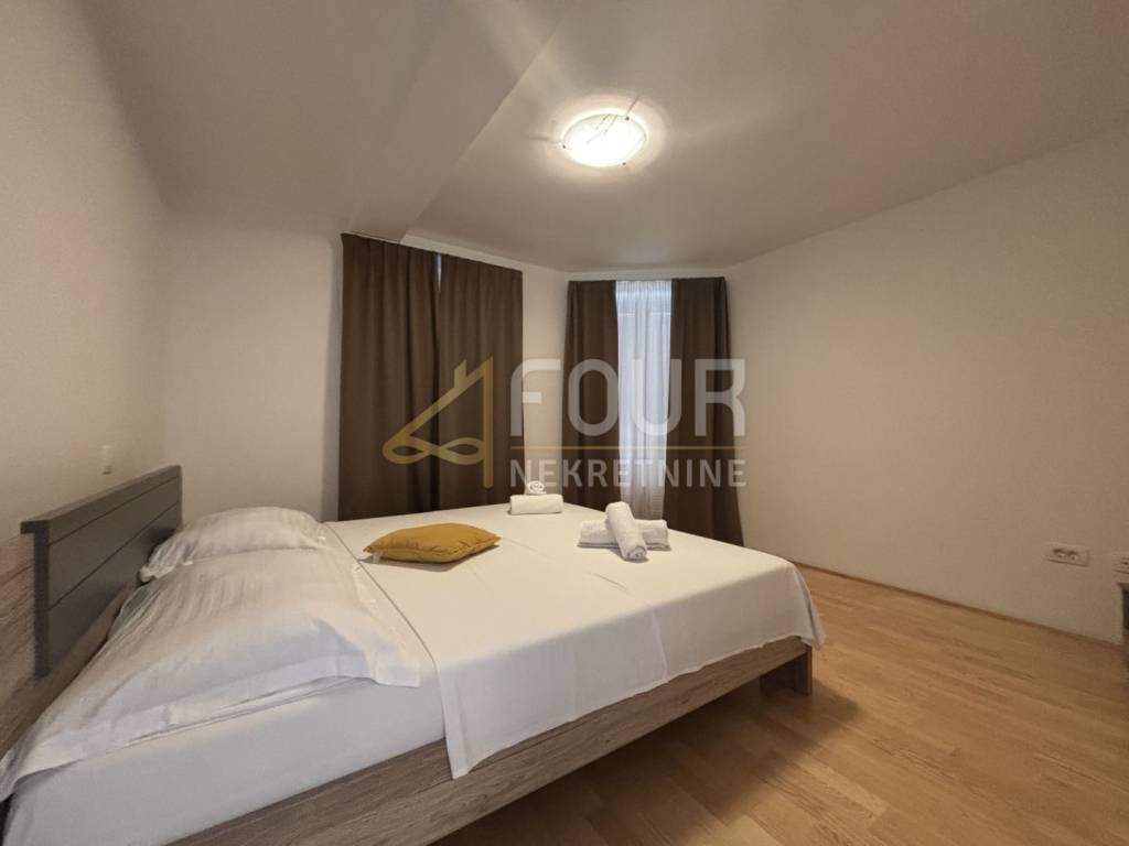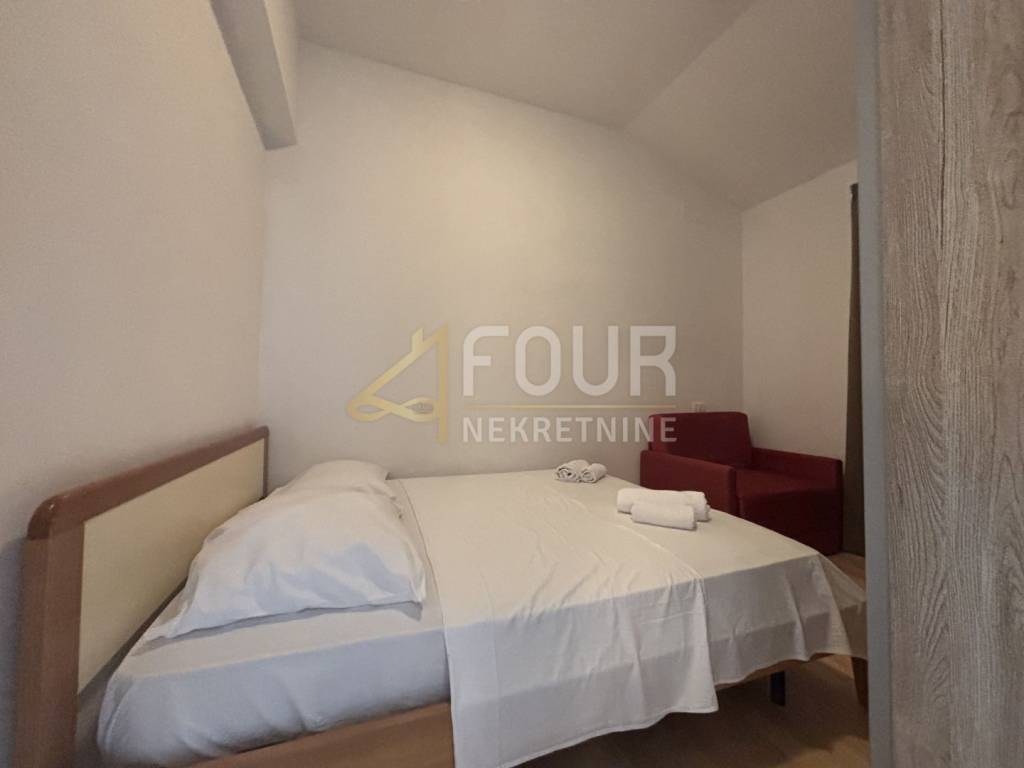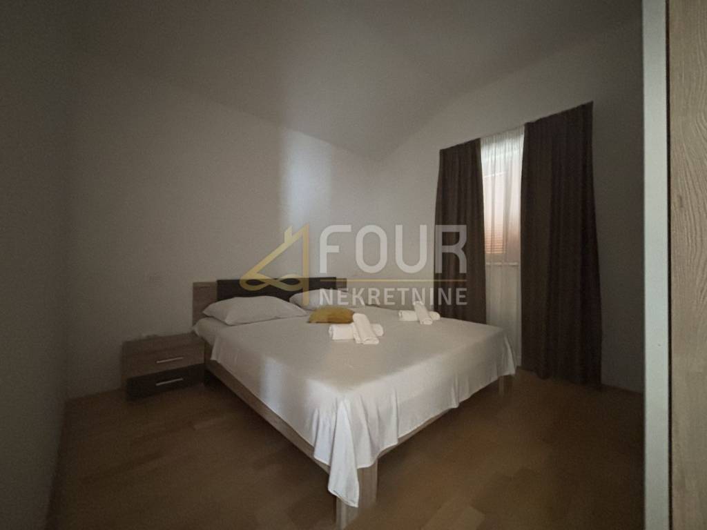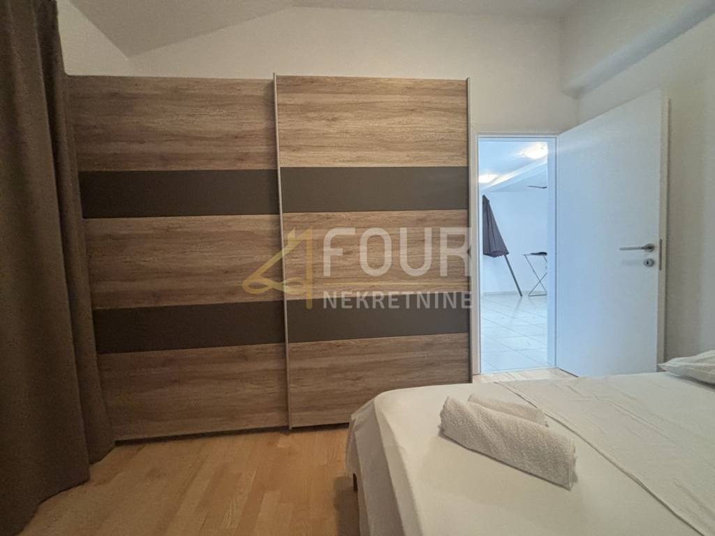 Iz dnevnog dijela izlazi se na terasu s otvorenim pogledom na more, dok jedna spavaća soba ima izlaz na balkon.