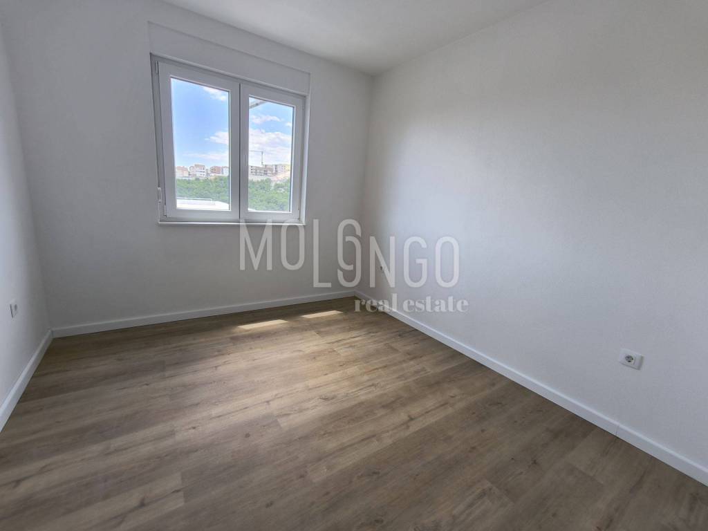 Stan se sastoji od hodnika, kupaonice, ostave, dvije spavaće sobe te dnevnog boravka s kuhinjom s izlazom na prostranu lođu.