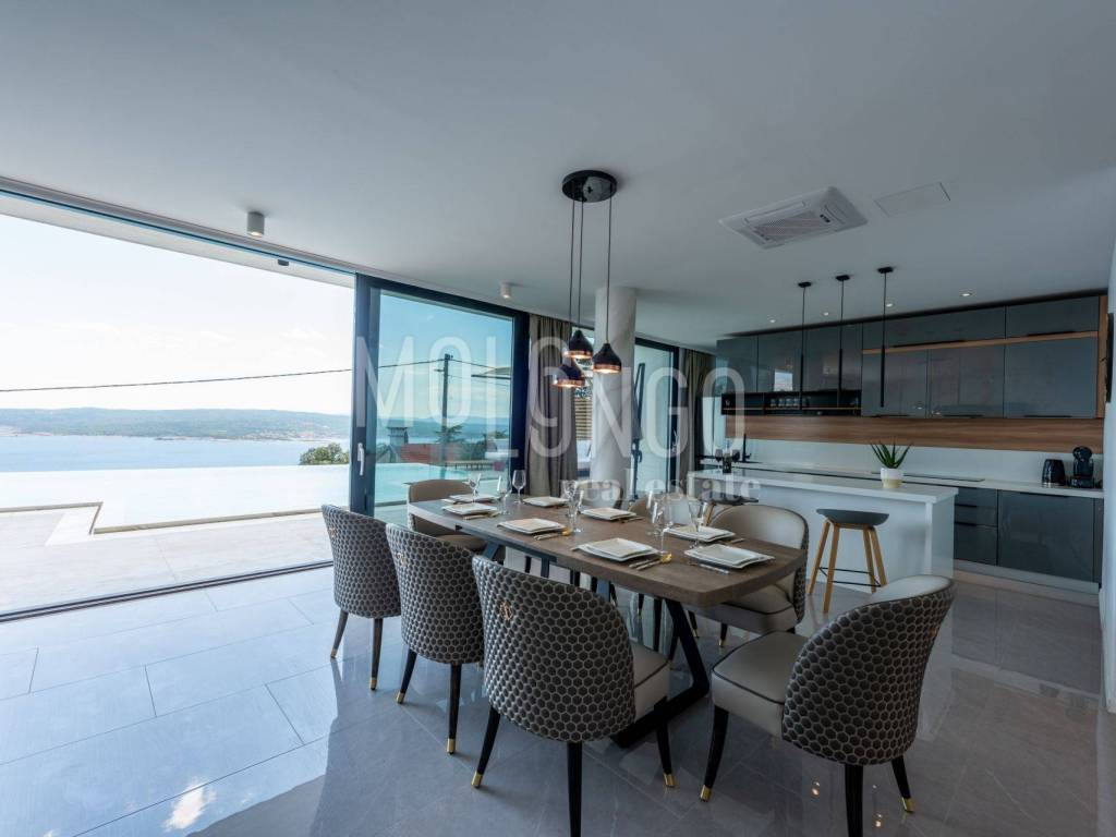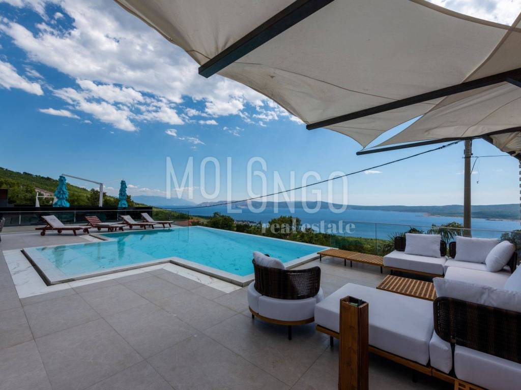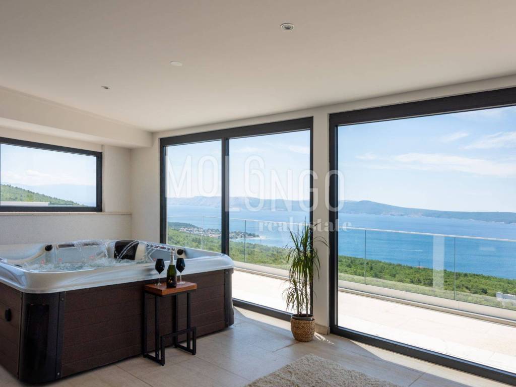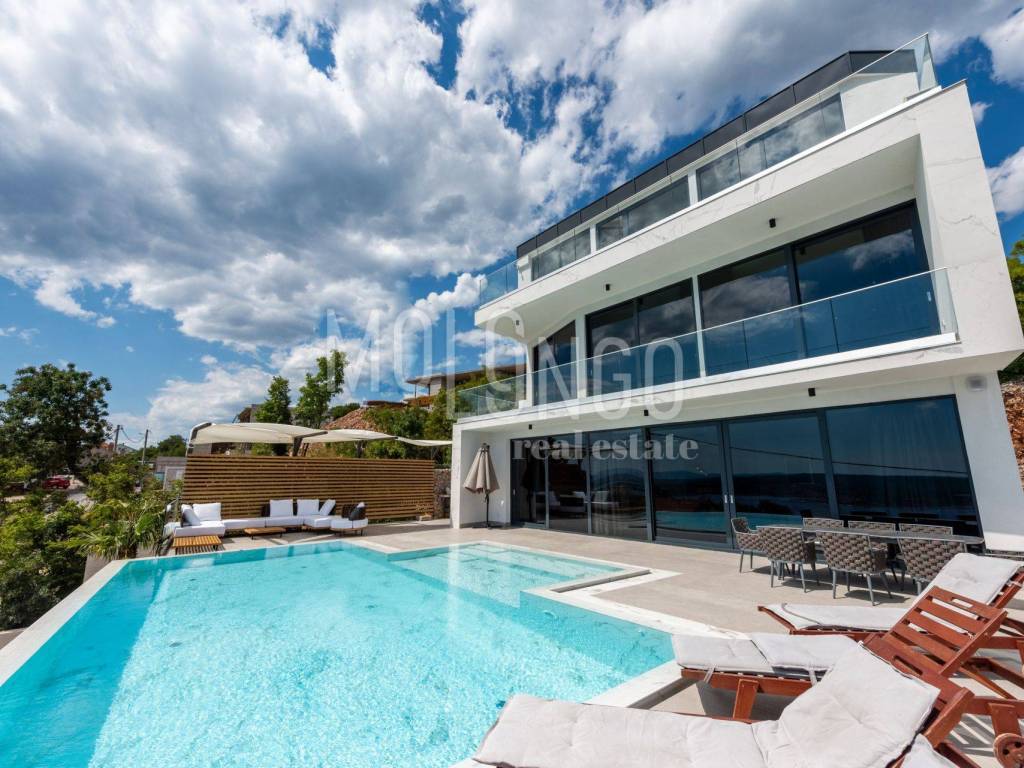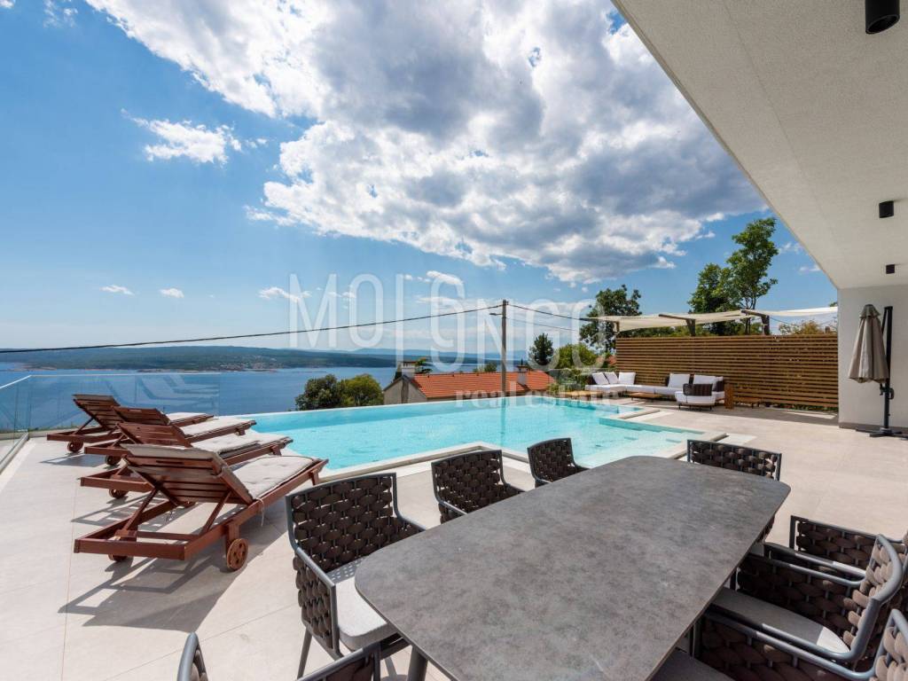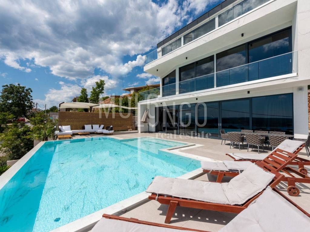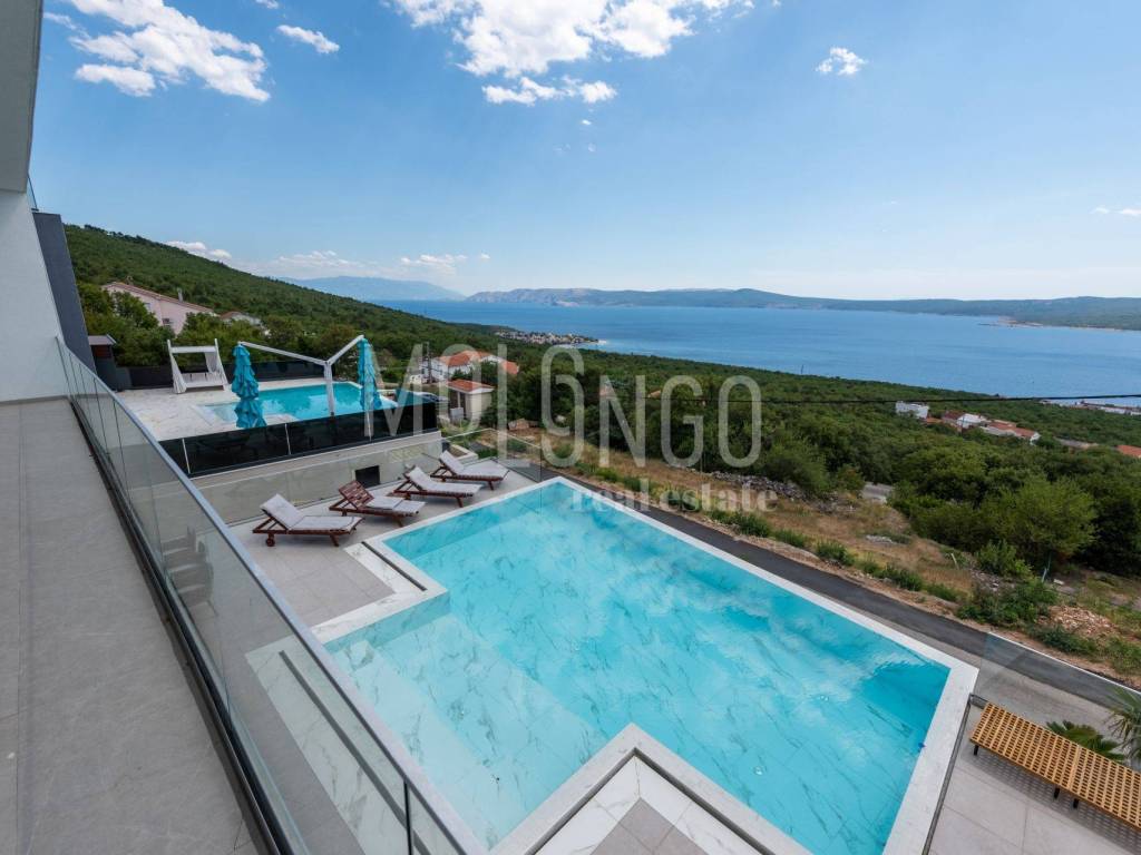 Na prodaju je moderna vila u mirnom dijelu Crikvenice s neometanim pogledom na more i otoke. Opremljena je svim potrebnim kućanskim aparatima i modernim namještajem. Grijanje i hlađenje su riješeni sustavom dizalica topline. Villa se sastoji od prostranog dnevnog dijela i četiri spavaće sobe, svaka s vlastitom kupaonicom. Okućnica uključuje infinity bazen, sunčalište, roštilj te tri parkirna mjesta. Idealna je kao turistička ili rezidencijalna nekretnina za odmor. Za sve ostale informacije kontaktirajte agenta.