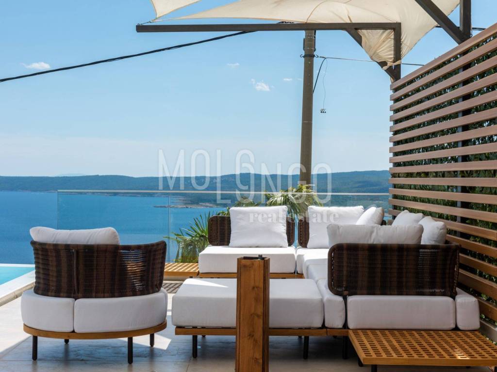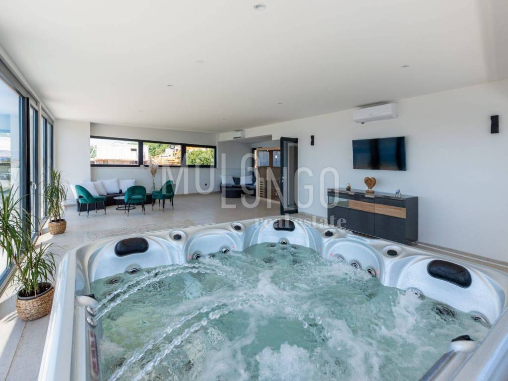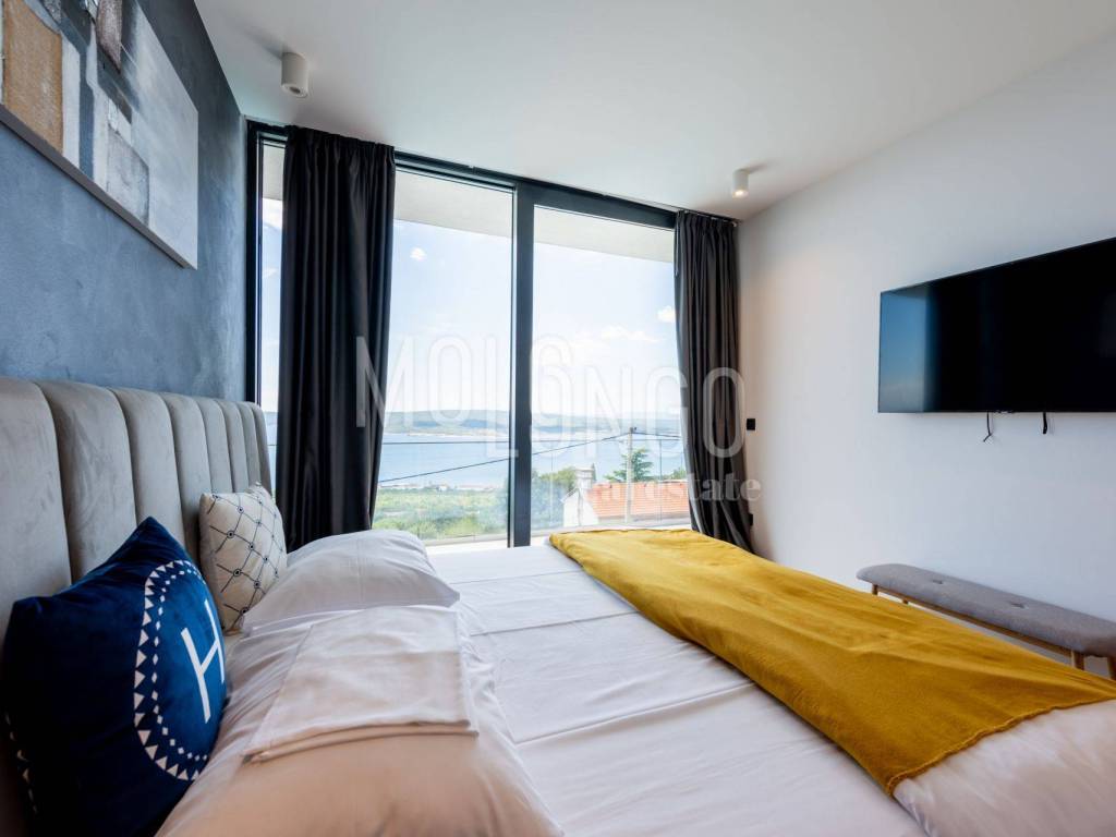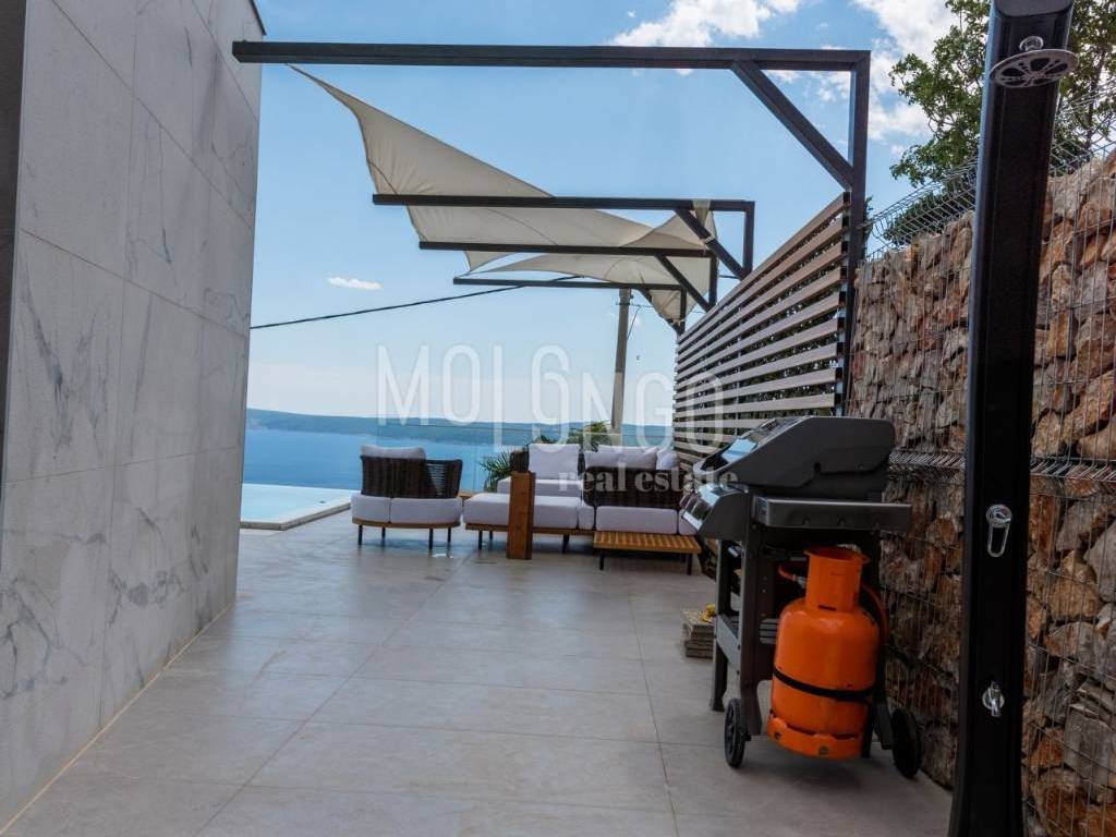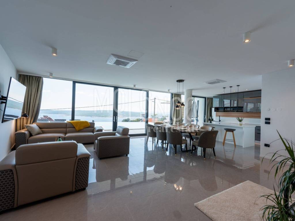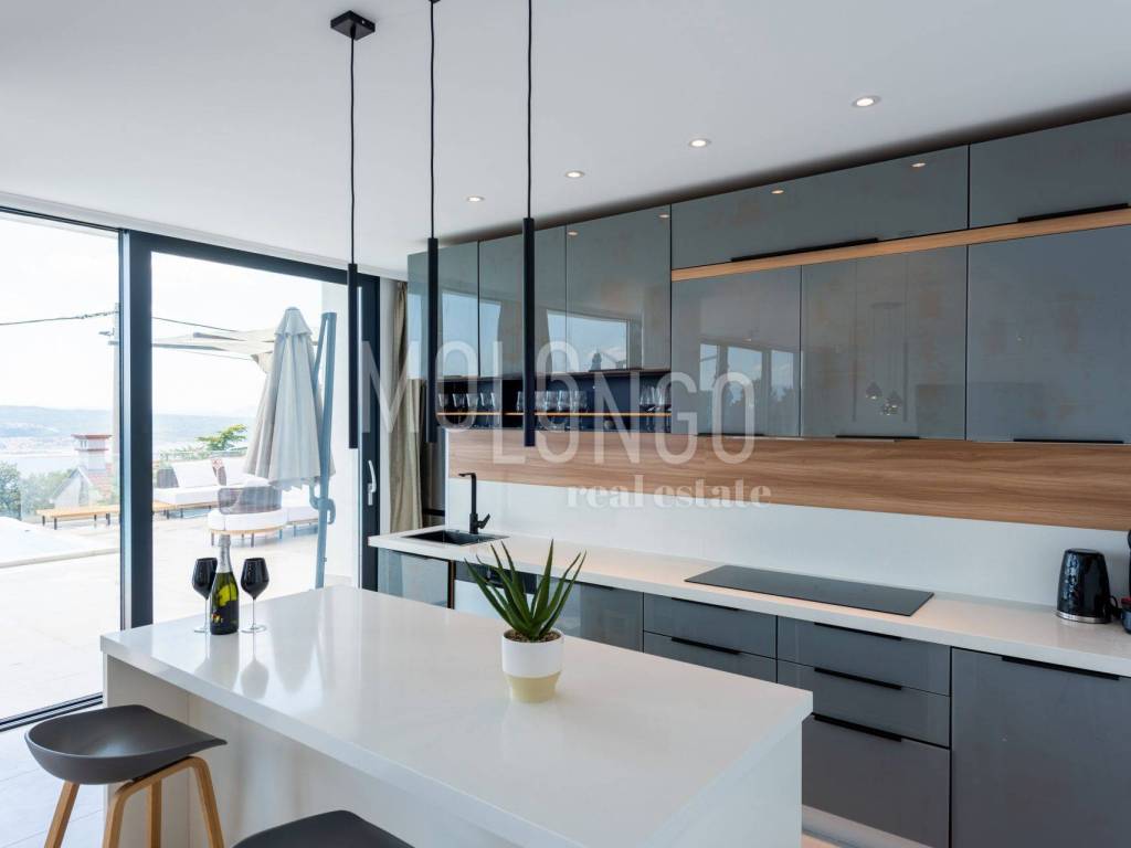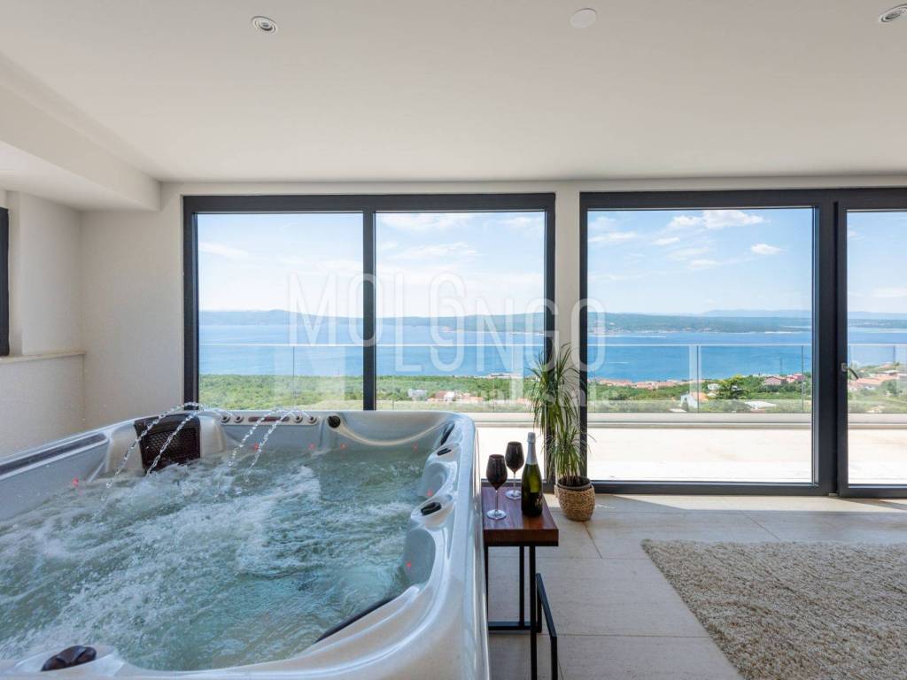 Na prodaju je moderna vila u mirnom dijelu Crikvenice s neometanim pogledom na more i otoke. Opremljena je svim potrebnim kućanskim aparatima i modernim namještajem. Grijanje i hlađenje su riješeni sustavom dizalica topline. Villa se sastoji od prostranog dnevnog dijela i četiri spavaće sobe, svaka s vlastitom kupaonicom. Okućnica uključuje infinity bazen, sunčalište, roštilj te tri parkirna mjesta. Idealna je kao turistička ili rezidencijalna nekretnina za odmor. Za sve ostale informacije kontaktirajte agenta.
