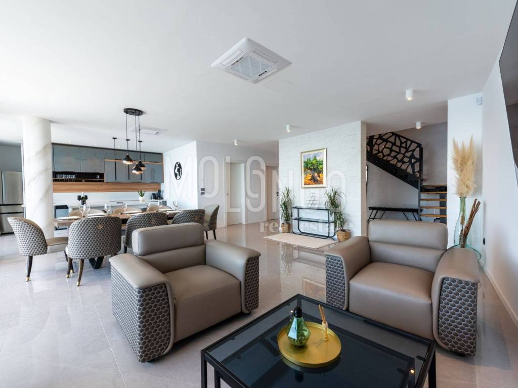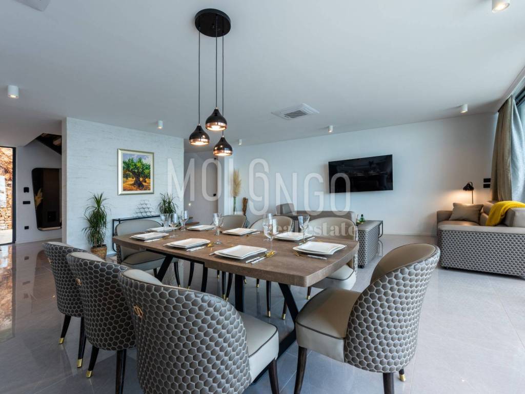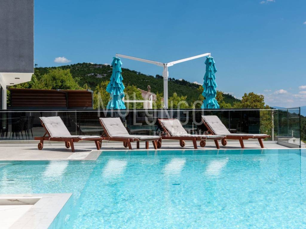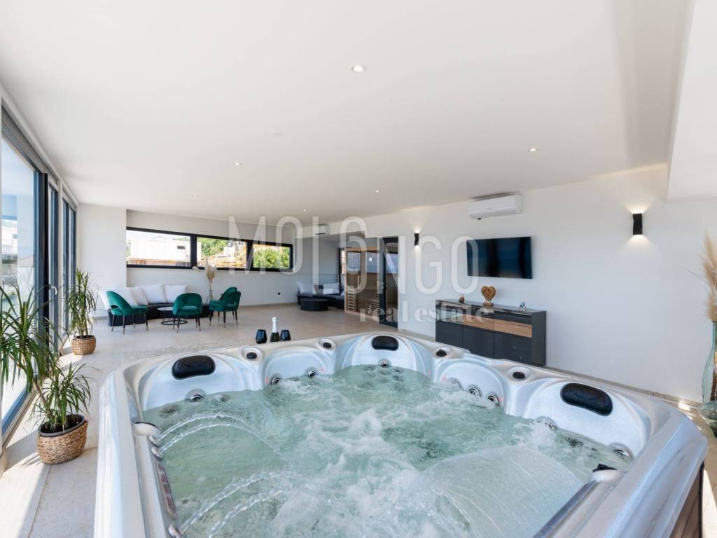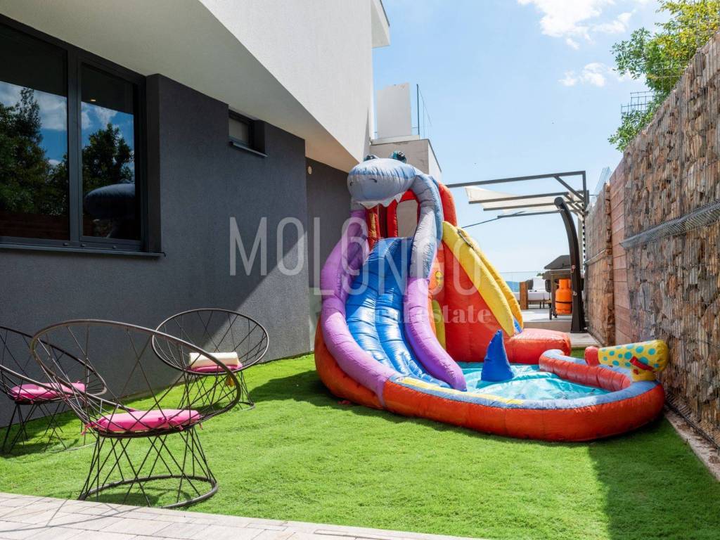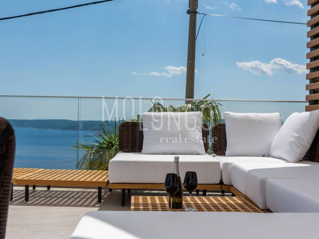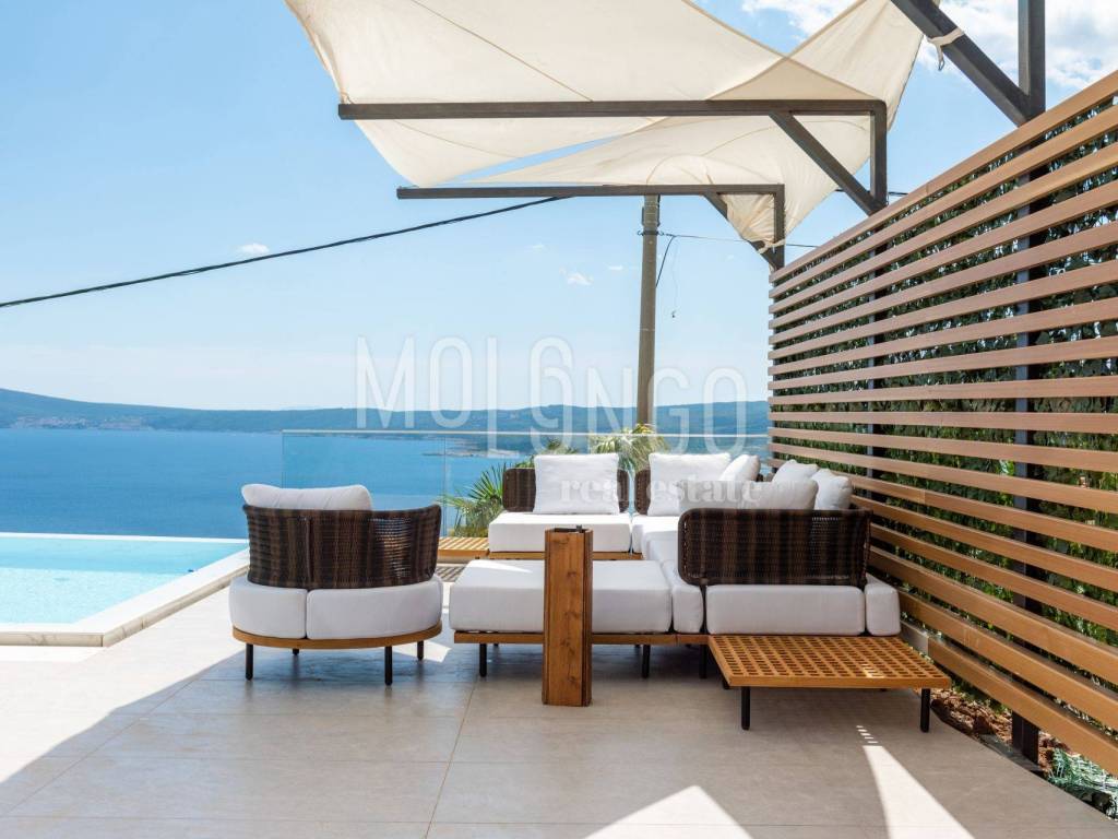 Na prodaju je moderna vila u mirnom dijelu Crikvenice s neometanim pogledom na more i otoke. Opremljena je svim potrebnim kućanskim aparatima i modernim namještajem. Grijanje i hlađenje su riješeni sustavom dizalica topline. Villa se sastoji od prostranog dnevnog dijela i četiri spavaće sobe, svaka s vlastitom kupaonicom. Okućnica uključuje infinity bazen, sunčalište, roštilj te tri parkirna mjesta. Idealna je kao turistička ili rezidencijalna nekretnina za odmor. Za sve ostale informacije kontaktirajte agenta.