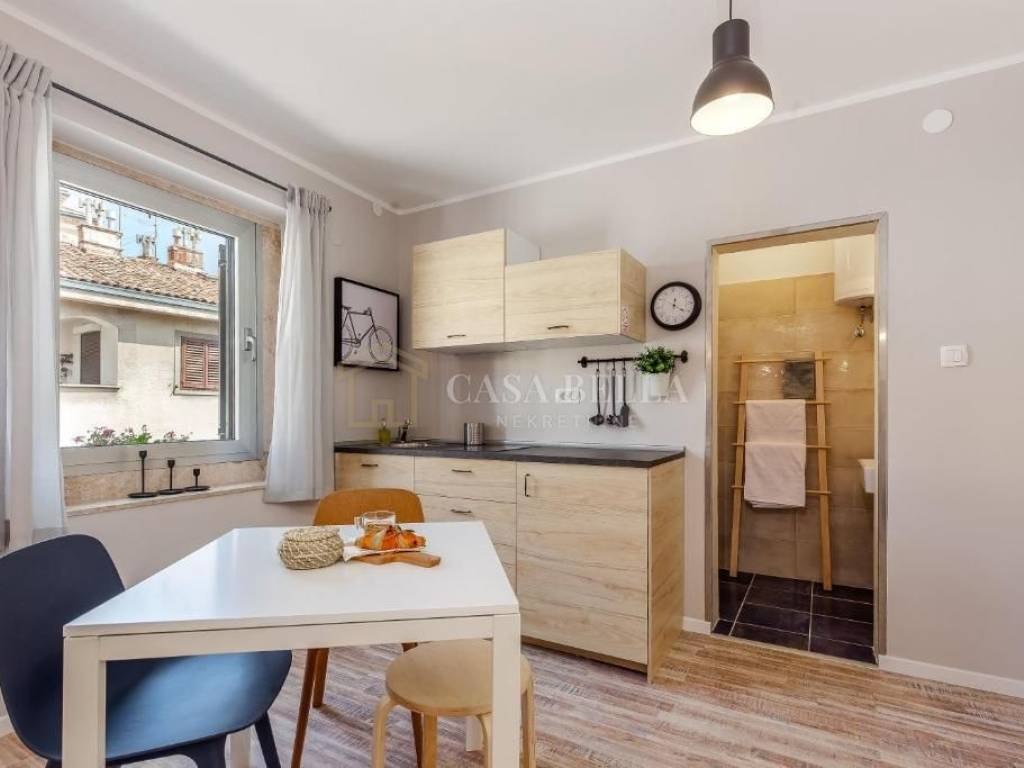 Casa Bella iz ponude izdvaja u staroj jezgri grada dvoetažan stan preuređen u moderno opremljene kategorizirane apartmane u stambeno -poslovnoj zgradi sa zasebnim ulazom. Zgrada je održavana sa novim krovom ,armirano betonske konstrukcije izgrađena 1960 godine . Kvadratura stana je podijeljena pregradbenim zidovima u četiri stambene jedinice. Tri od tih jedinica su studiji, dok je četvrta jedinica veći apartman. Svaka stambena jedinica ima vlastitu kuhinju i kupaonicu te je opremljena svim potrebnim namještajem za turistički najam. Godina posljednje renovacije je bila 2018.godine a kroz pet godina uspješnog turističkog iznajmljivanja dodatno se ulagalo u vidu održavanja standarda . Naglasak na ovoj nekretnini je njezina izvrsna lokacija. Glavna gradska šetnica, poznata kao "Korzo," udaljeni su samo nekoliko minuta laganog hoda.Svi drugi važni sadržaji grada također su vam na dohvat ruke. Prodaje se namješteno uz sav dodatni inventar ( posteljina, ručnici, perilica rublja ) i uhodano poslovanje ( postojeće rezervacije za 2025. godinu). Ne propustite priliku i postanite vlasnik ove fantastične investicijske nekretnine!