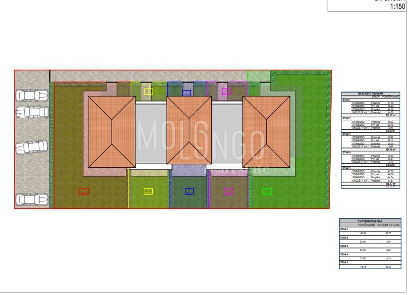 Kuća na atraktivnoj lokaciji, zadnja u nizu, udaljena svega 2 km od centra Poreča i mora. Prostire se na tri etaže s ukupnom površinom od 132,55 m2.