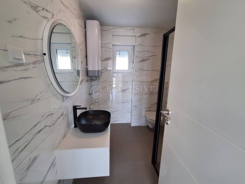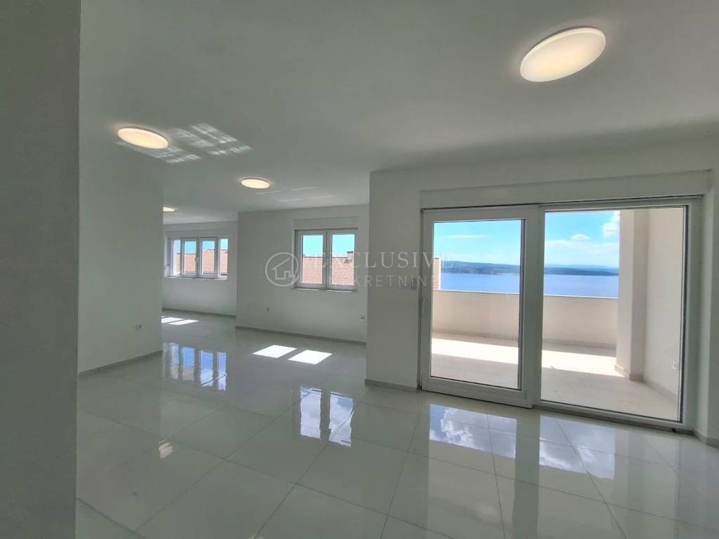 Apartman u novoizgrađenom stambenom objektu s ukupno 6 stambenih jedinica s prelijepim otvorenim pogledom na more smješten u Crikvenici u blizini svih sadržaja. Apartman ima stambenu površinu od 123 m2 i nalazi se na 1. katu. Sastoji se od tri spavaće sobe, ulaznog hodnika, kuhinje, blagovaonice, dnevnog boravka, 2 kupaonice i zasebnog toaleta, terase površine 15 m2 i balkona površine 9 m2. Karakterizira ga obilje dnevne svjetlosti koja prodire u interijer preko staklenih stijena i prozora kojima obiluje. Ova kvalitetna nekretnina opremljena je PVC stolarijom sa električnim podizačima roleta, kvalitetnim keramičkim podnim oblogama, sanitarijama i klima uređajima. Pripadajuće vanjsko parkirno mjesto. Odlična lokacija udaljena svega 400 m od mora. Izvanredna prilika!