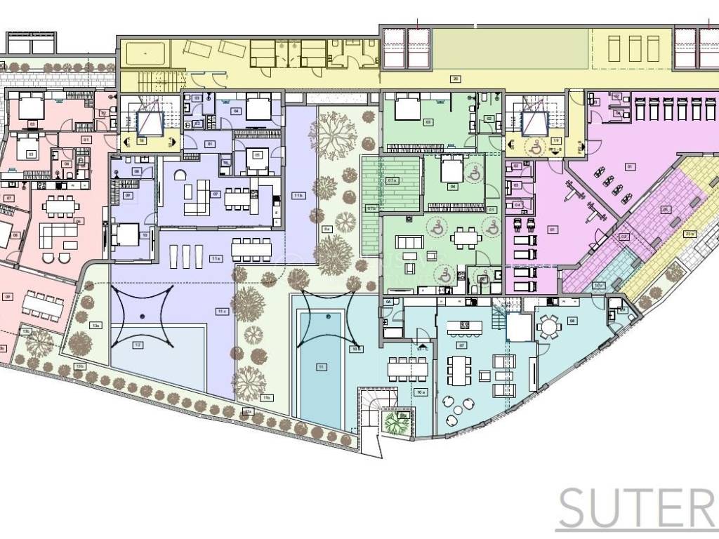 Rezidencija se sastoji od dvije podzemne etaže (garaža) i četiri nadzemne etaže – prizemlja, prvog i drugog kata, te potkrovlja s krovnom terasom u kojem je smješteno ukupno 23 stana, jedne vile i dva poslovna prostora s pratećim sadržajem ( unutarnji bazen, sauna, relax zona, fitness prostor ).
