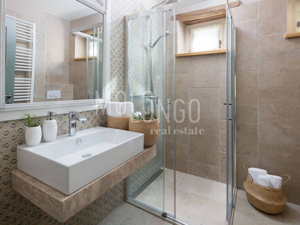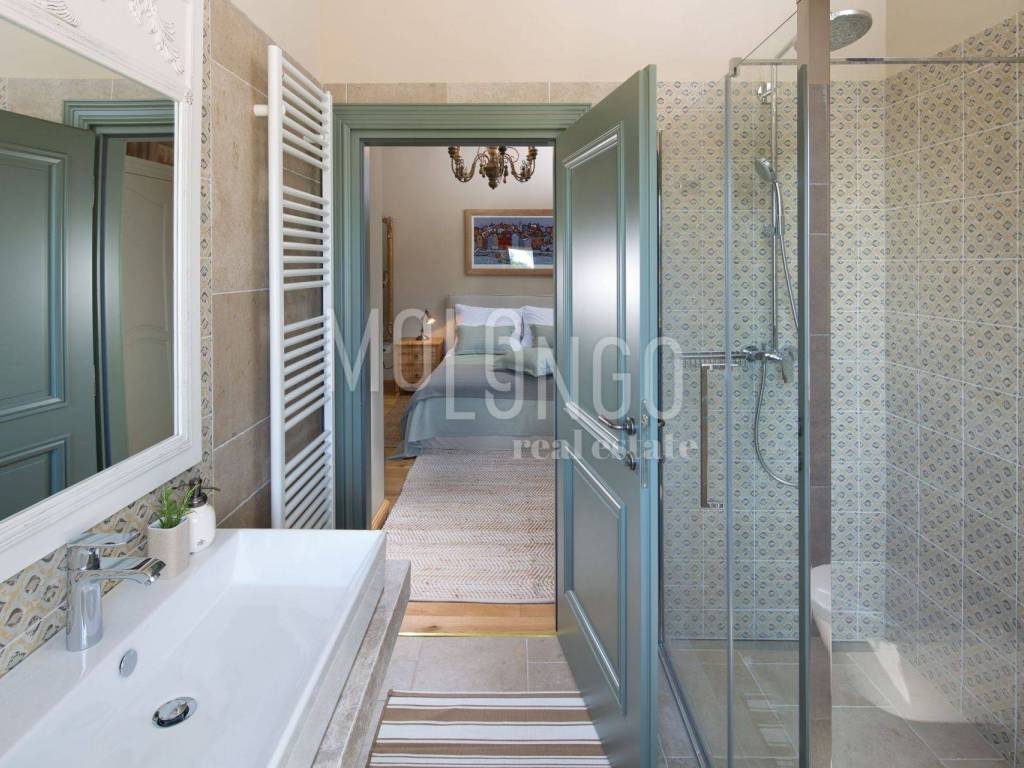 U prizemlju vile nalazi se veliki dnevni boravak sa kaminom, blagovaonica s prostranim stolom za deset osoba, moderno opremljena rustikalna kuhinja, dvije spavaće sobe s privatnim kupaonicama, jedna s bračnim, a druga s dva odvojena kreveta.