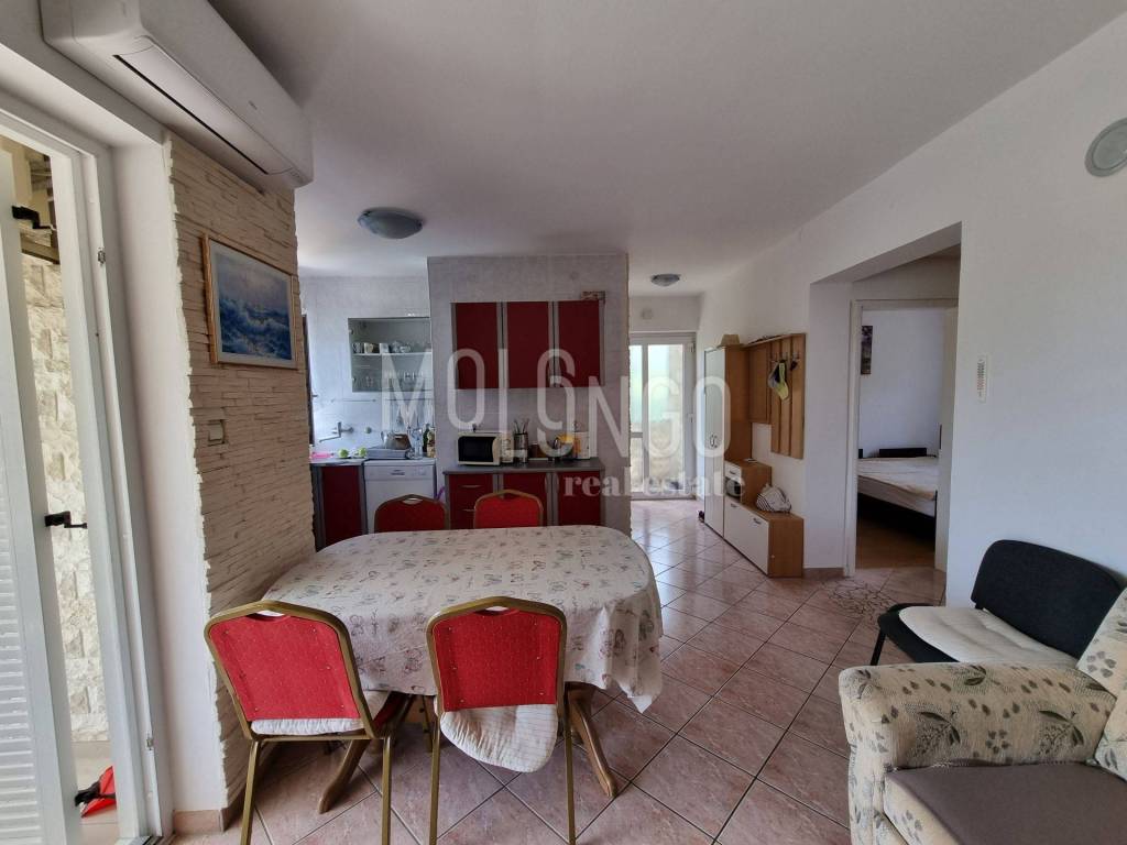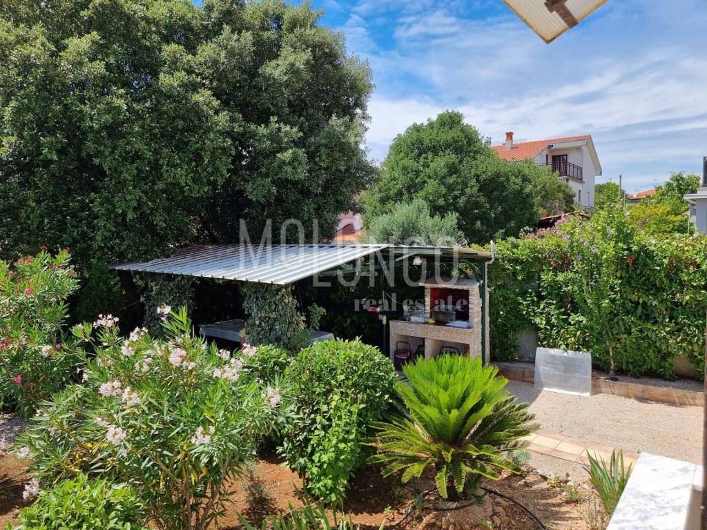 Prodaje se odlična manja kuća na otoku Krku. Konciprirana je na način kao dva dvosobna stana, od kojih je jedan u suterenu, a drugi u visokom prizemlju. Predivan primorski vrt okružuje ovu nekretninu, te svojim sadržajem oplemenjuje život vlasnika. Na okućnici je veliki roštilj za veće društvo, a manji za obiteljske potrebe nalazi se u hladovini vrta. Moguće je napraviti manji bazen dok je hidromasažna kada idealna. Parking je moguć za tri vozila, a dodatna spremište dodatni su skladišni prostor. Ovakva nekretnina idealna je za korištenje ili kao investicija za ljubitelje našeg Zlatnog otoka. Udaljenost do mora i prvih plaža je 800m zračne linije.