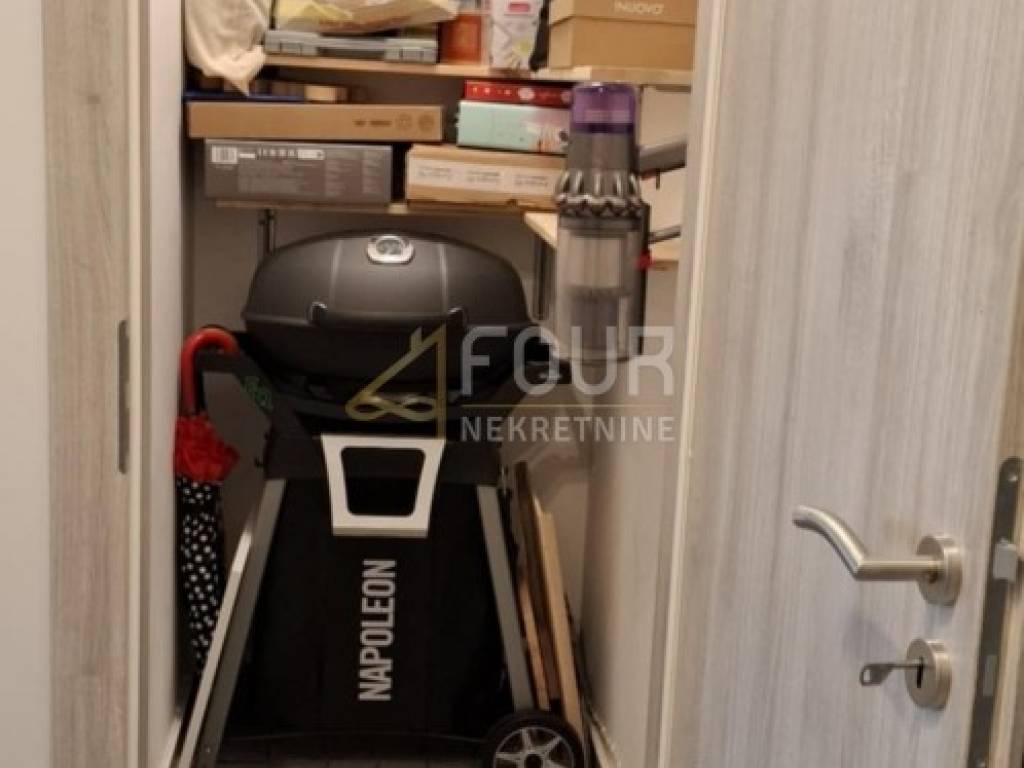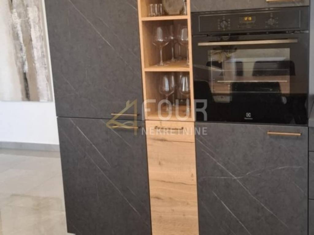 Namještaj je rađen po mjeri i uključen je u cijenu, ostaje sve osim televizora, perilice rublja i madraca.