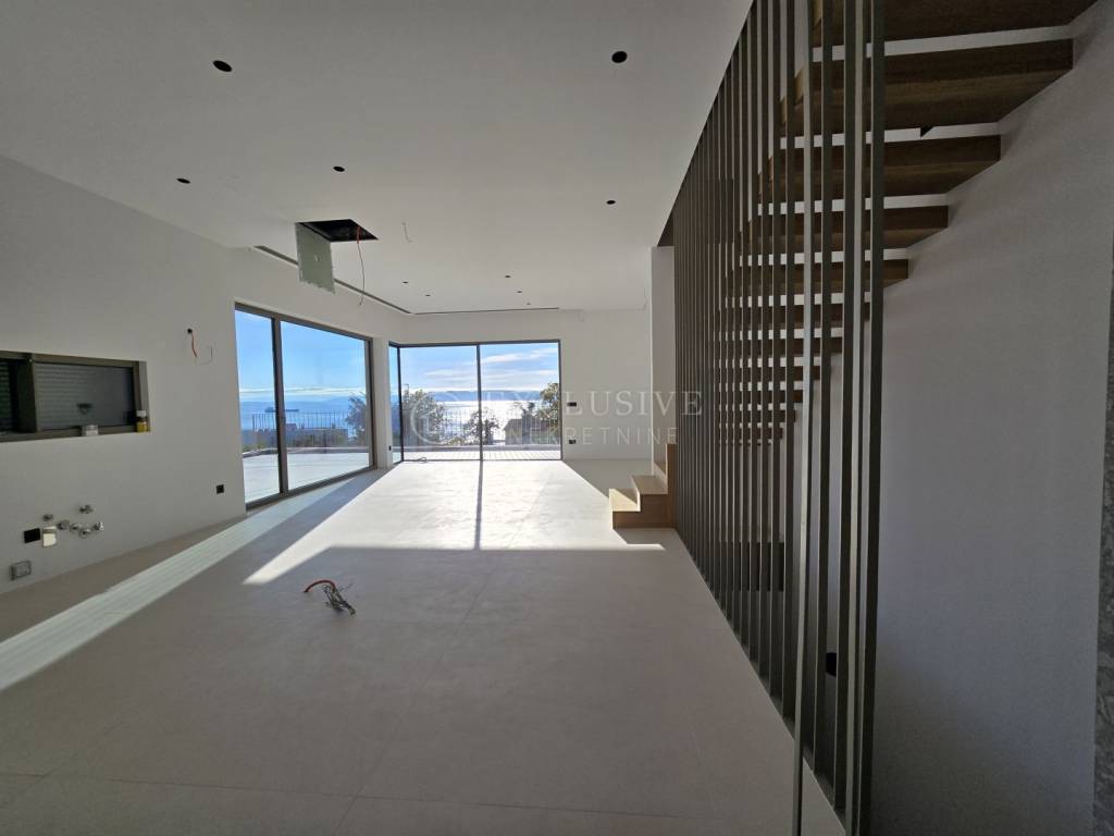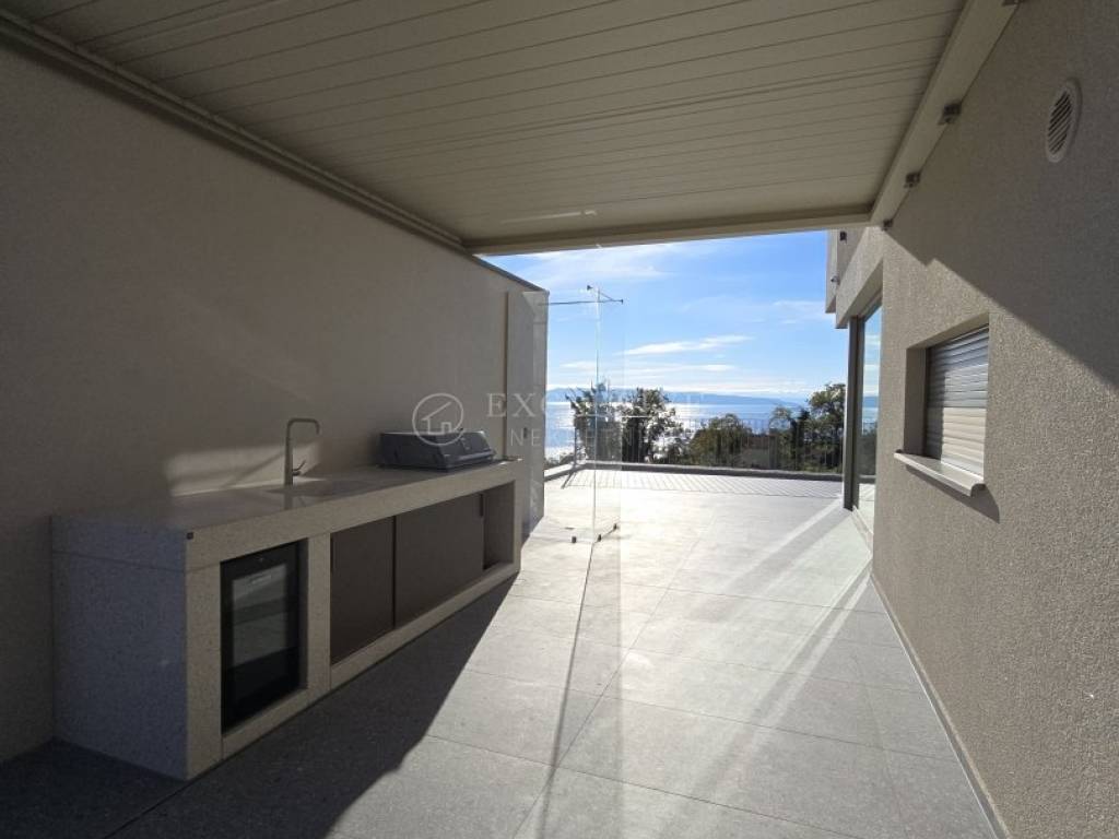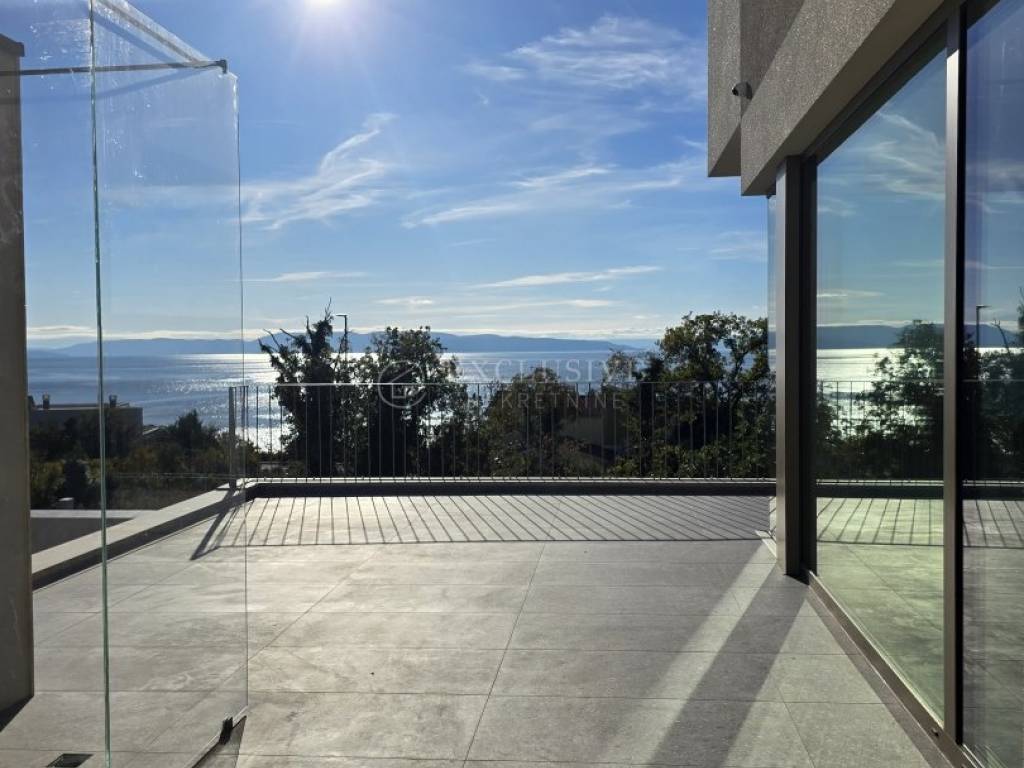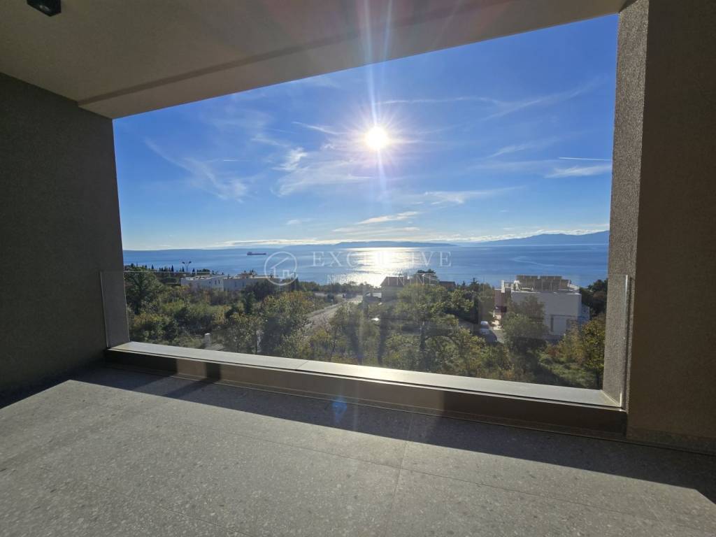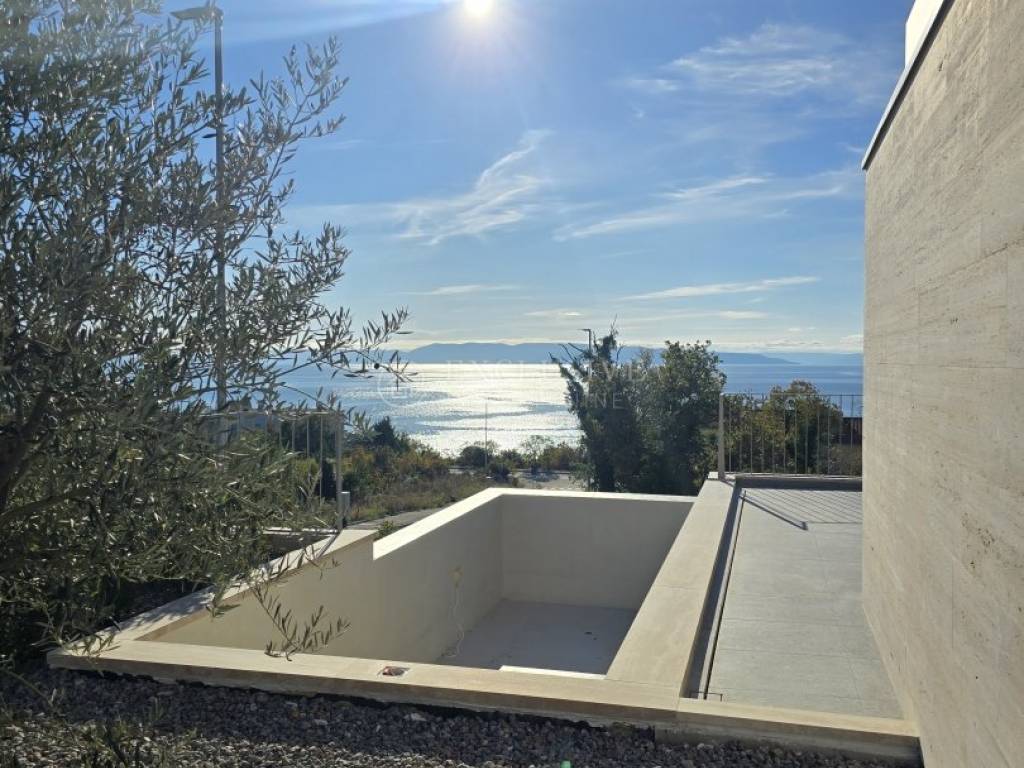 KOSTRENA – ELEGANTAN TROETAŽNI STAN S PRIVATNIM BAZENOM I PANORAMSKIM POGLEDOM NA MORE