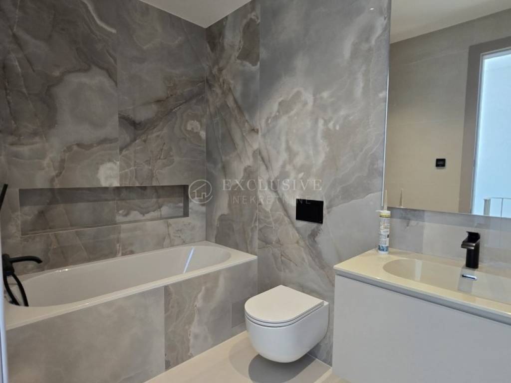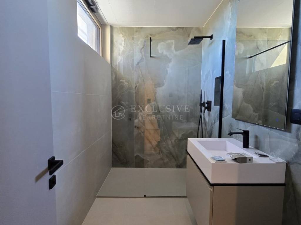 Stanu pripada privatno parkirno mjesto, vanjski WC, uređena okućnica od 173 m² i elegantan privatni bazen od 22 m² — savršena oaza za trenutke opuštanja u potpunoj privatnosti. Smješten u slijepoj ulici i okružen mirom, a ipak nadomak mora, šetnica i svih potrebnih sadržaja, ovaj stan predstavlja rijetku priliku za sve koji traže luksuz, estetiku i vrhunski standard života na Jadranu.