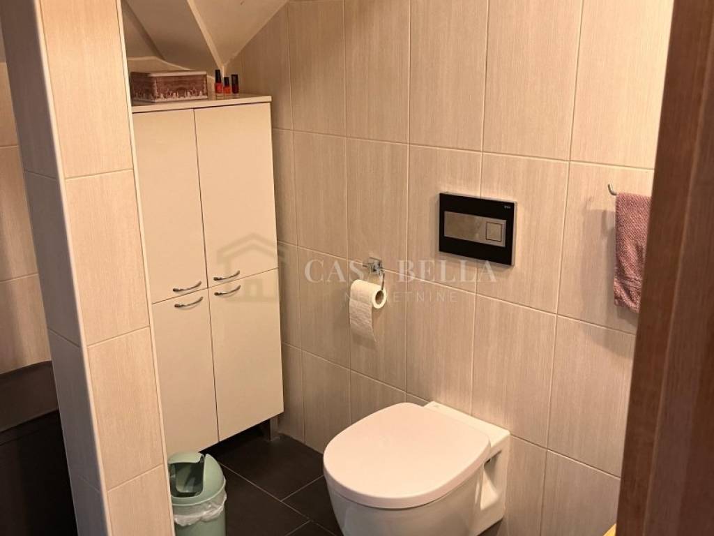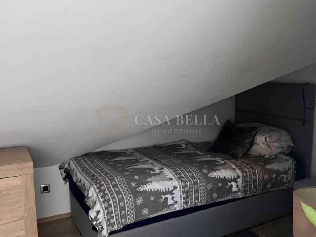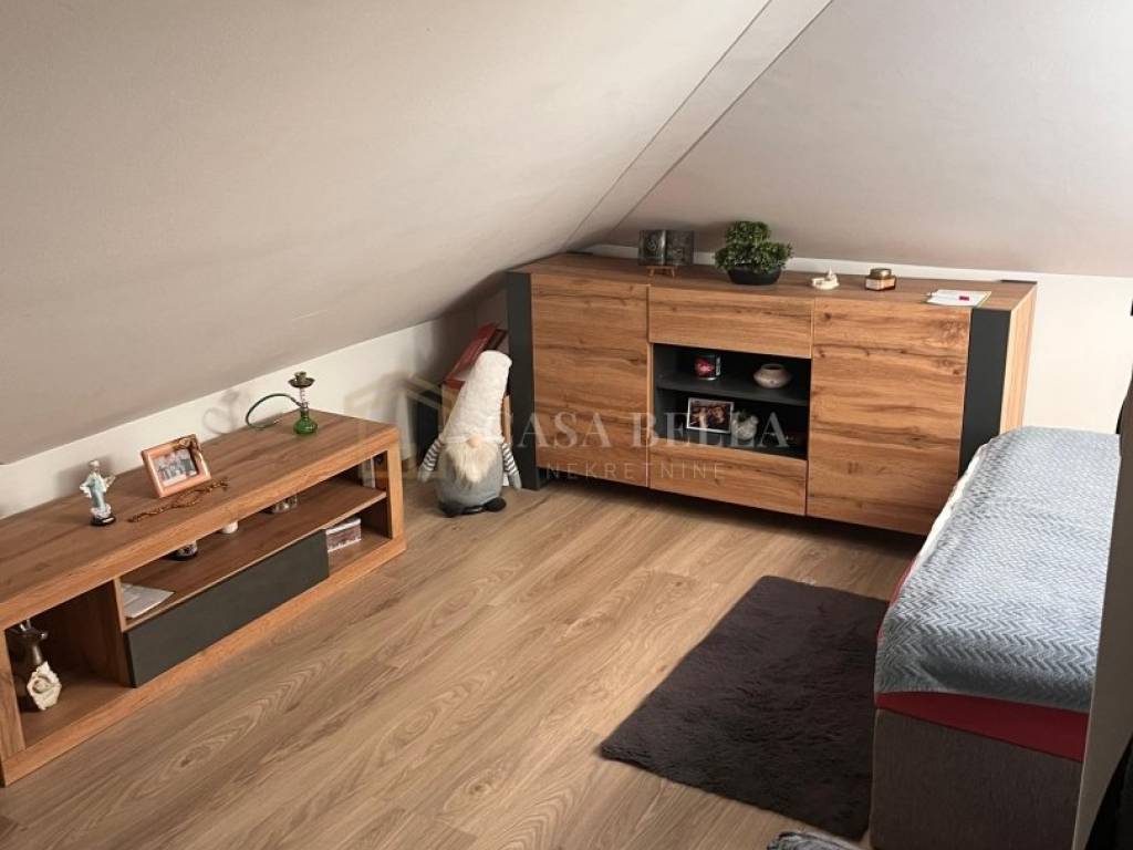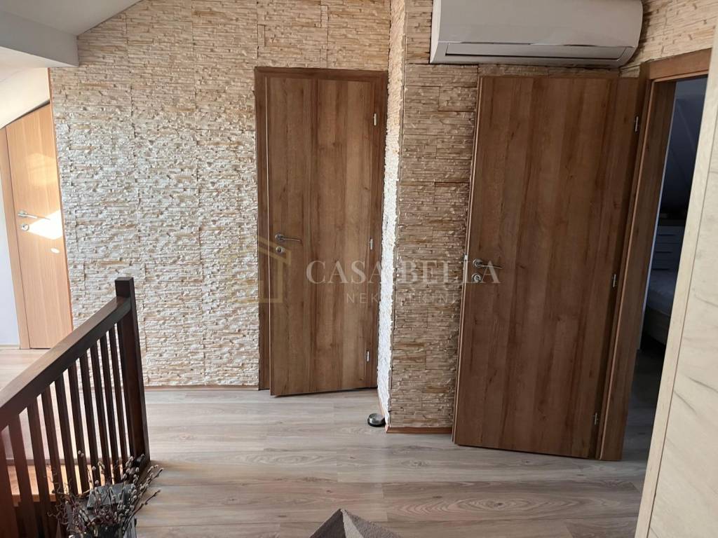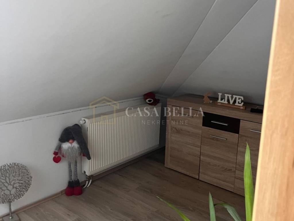 Ovaj dvoetažni potkrovni stan nalazi se u samom centru Zaprešića, u neposrednoj blizini svih važnih sadržaja. Ukupna površina stana iznosi 95,21 m², dok je neto korisna površina 69,68 m². U donjoj etaži nalazi se prostran i svijetao dnevni prostor koji objedinjuje kuhinju, blagovaonicu i boravak, a na gornjoj etaži tri spavaće sobe, kupaonica s tušem i spremište. Stan je kompletno renoviran prije pet godina te je opremljen modernim namještajem rađenim po mjeri, zbog čega ne zahtijeva nikakva dodatna ulaganja. Grijanje je plinsko etažno, a stan se prodaje namješten, osim osobnih stvari prodavatelja te sušilice rublja, perilice suđa i škrinje. Zgrada se nalazi odmah uz zaprešićku tržnicu, a javni parking je osiguran uz godišnju pretplatu. Papiri su uredni, što omogućuje kupnju i putem kredita.
