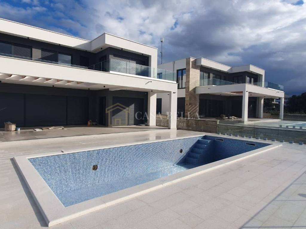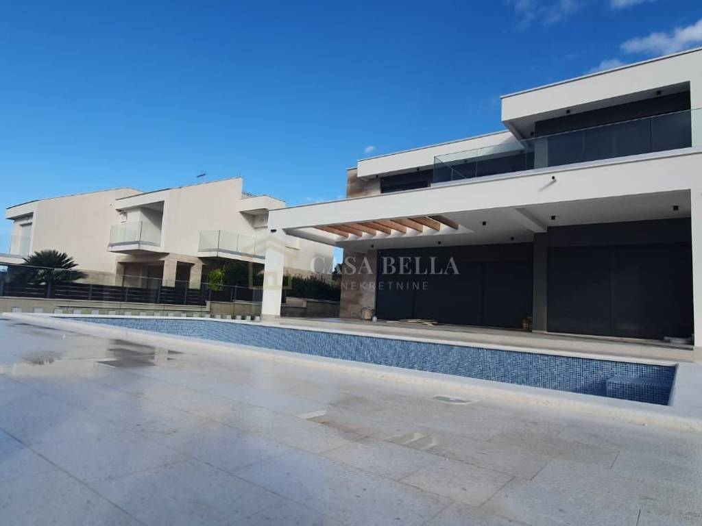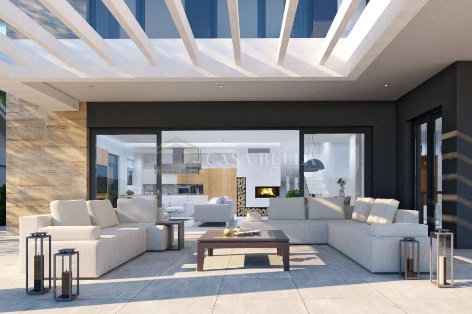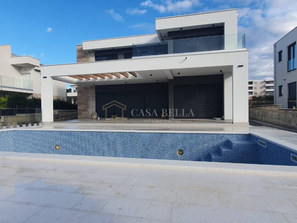 vila: -građevinska parcela cca 750m2, 310 m2 bruto građevina -samostalna dvoetažna građevina -moderna minimalistička arhitektura -četiri spavaće sobe s privatnim kupaonicama -velike staklene stijene u XXL formatu -dodatna kupaonica za goste -visoki stropovi 3m -spušteni stropovi u Knauf tehnici -otvoreni kamin u dnevnom boravku -lebdeće stepenište u monoblock izvedbi popločeno mramorom