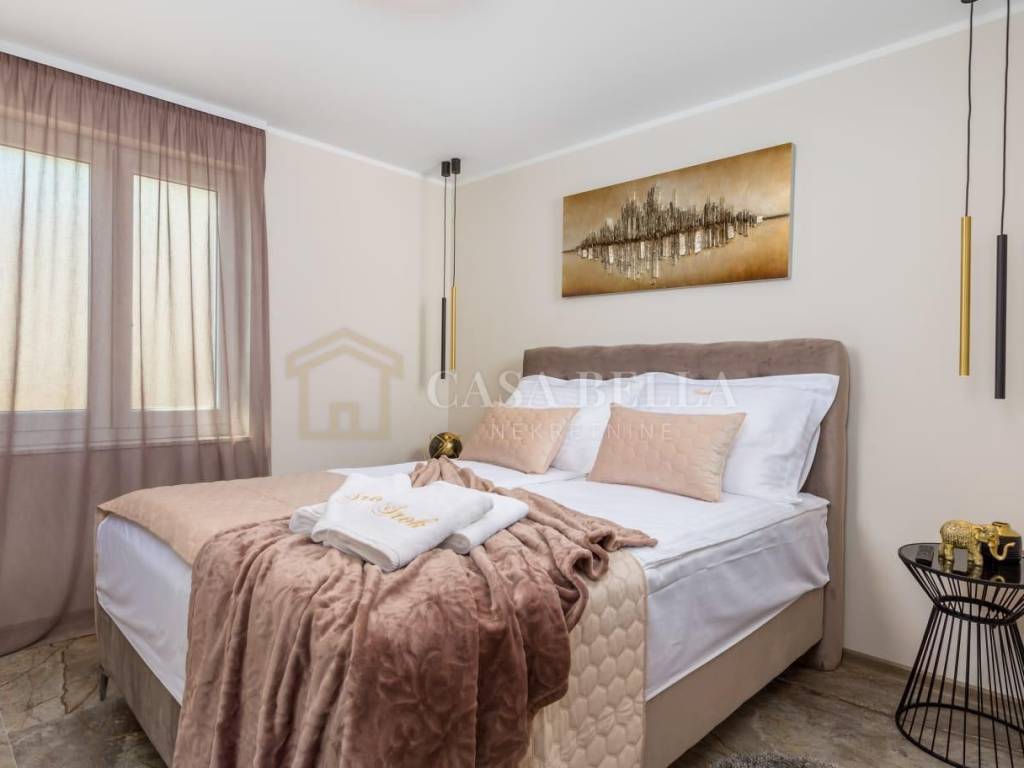 CASA BELLA iz ponude izdvaja jednosoban stan moderno uređen ukupne površine 56 m² na Kastvu.Stan se nalazi na prvom katu stambene kuće.