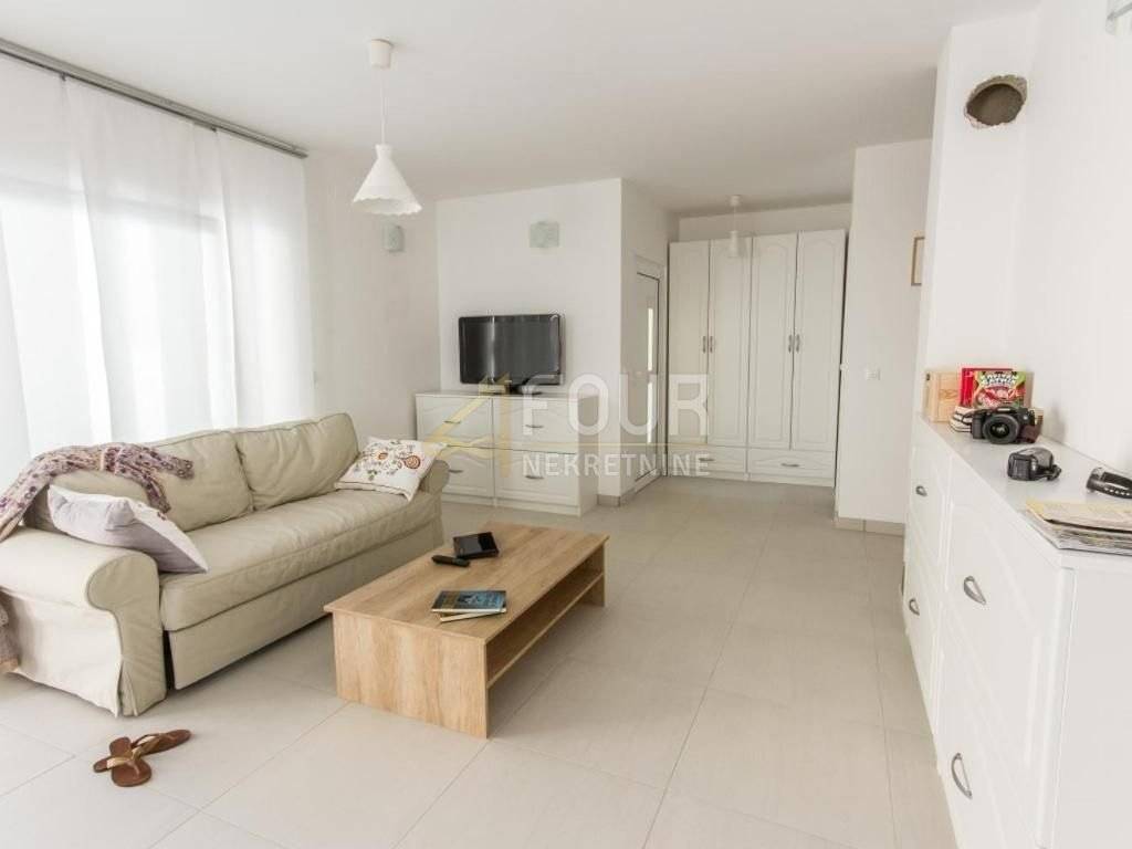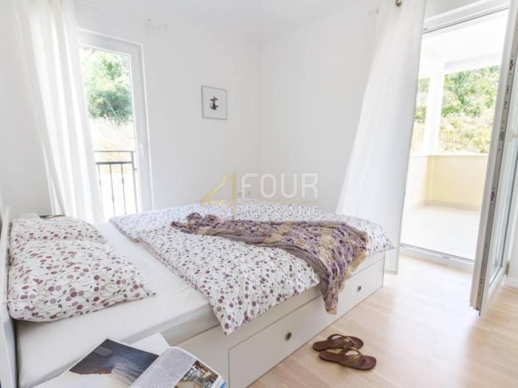 Kuća je potpuno uređena i opremljena, a koncipirana je kao dvoetažni prostor povezan unutarnjim stepeništem.