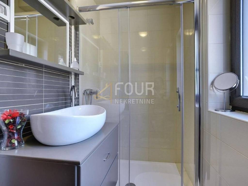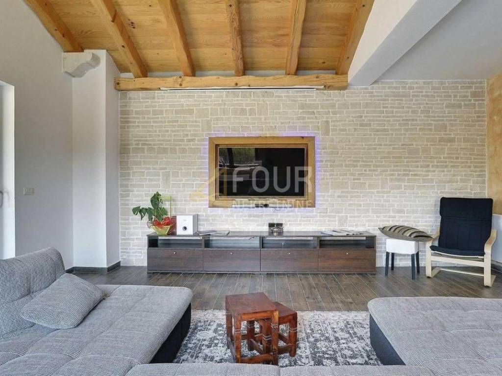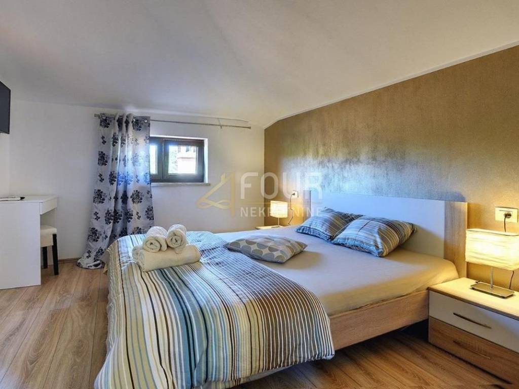 Ova raskošna vila ima površinu 400m2 i prostire se na tri etaže, potpuno je opremljena i uređena kombinacijom modernog i rustikalnog stila.