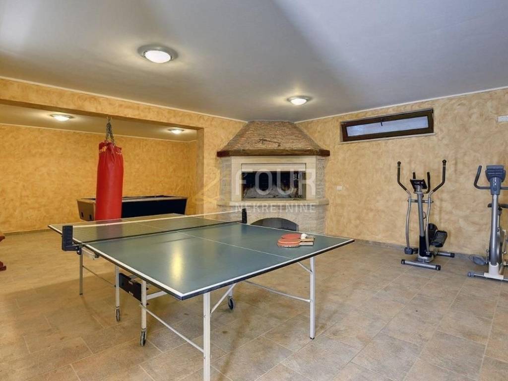 U suterenu se nalazi prostorija s kaminom i relax zonom s biljarom, loundry – vešeraj prostorija i kupaonica.