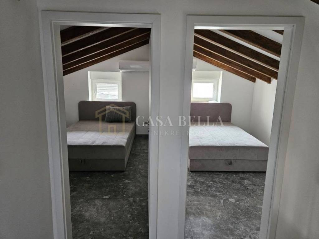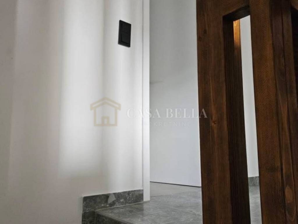 Raspored prostorija: • Prizemlje: otvoreni prostor koji povezuje dnevni boravak, kuhinju i blagovaonicu, s izlazom na dvorište i okućnicu • Prvi kat: prostrana spavaća soba i odvojeno kupatilo • Drugi kat: dvije spavaće sobe i dodatni WC