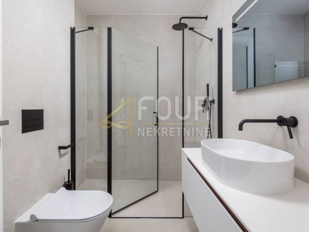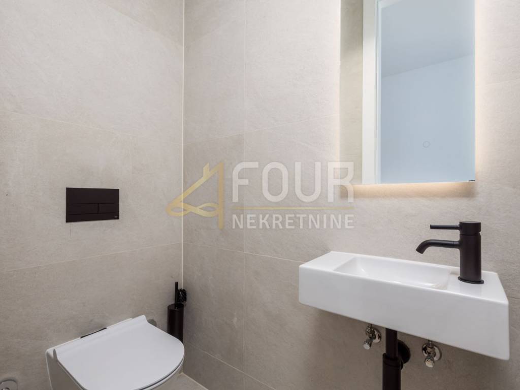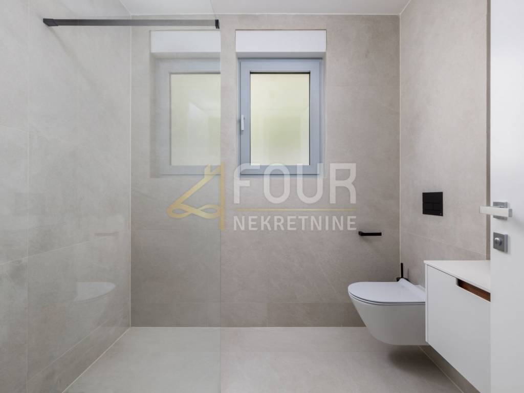 Iz dnevnog prostora izlazi se na dvije terase ukupne površine 21,44 m2, s kojih se pruža lijep pogled na more, dok posebnu vrijednost ove nekretnine čini prostrana privatna okućnica i vrt površine 101,45 m2, idealni za boravak na otvorenom i uživanje u mediteranskom okruženju. Stanarima je na raspolaganju i zajednički bazen koji dodatno podiže kvalitetu stanovanja.