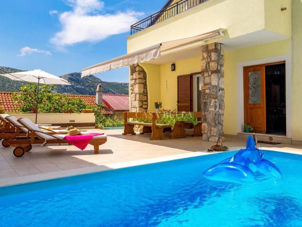 Oaza mira i užitka, smještena u malome mjestu u zaleđu Crikvenice, na oko pet kilometara vožnje do mora i prve plaže, ova nekretnina je izgrađena na parceli od 330m2. Nudi 240m2 stambenog prostora, oko 100m2 dvorišta, u kojem se između ostalog nalazi i bazen od 25m2. Villa je izgrađena u obliku prizemlja + prvog kata.