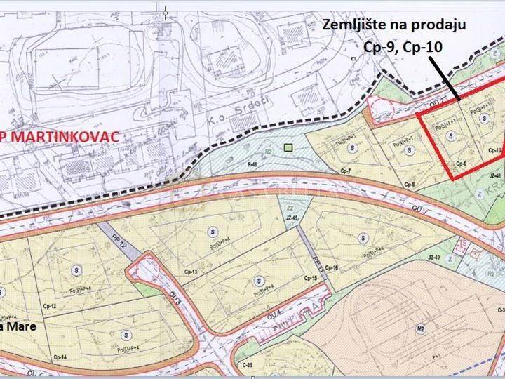 Casa Bella iz ponude izdvaja građevinski teren na Martinkovcu, veličine 1.800 m2, od toga 1.409 m2 građevinskog, 391 m2 zelenog pojasa. prodajem. Obuhvaća dvije građevinske parcele (676 m2 i 733 m2) definiranih DUP-om, na kojima je predviđena gradnja 2 višeobiteljske stambene građevine (PO+PS+1) sa po 4 stana svaka. Mirna lokacija, tereni južne orijentacije, otvoren pogled na more. Vlasništvo čisto, prilika za investitore koji se bave izgradnjom stambenih zgrada–stanova-apartmana. Lokacijska za cestu u fazi izrade.Obratite nam se s povjerenjem.