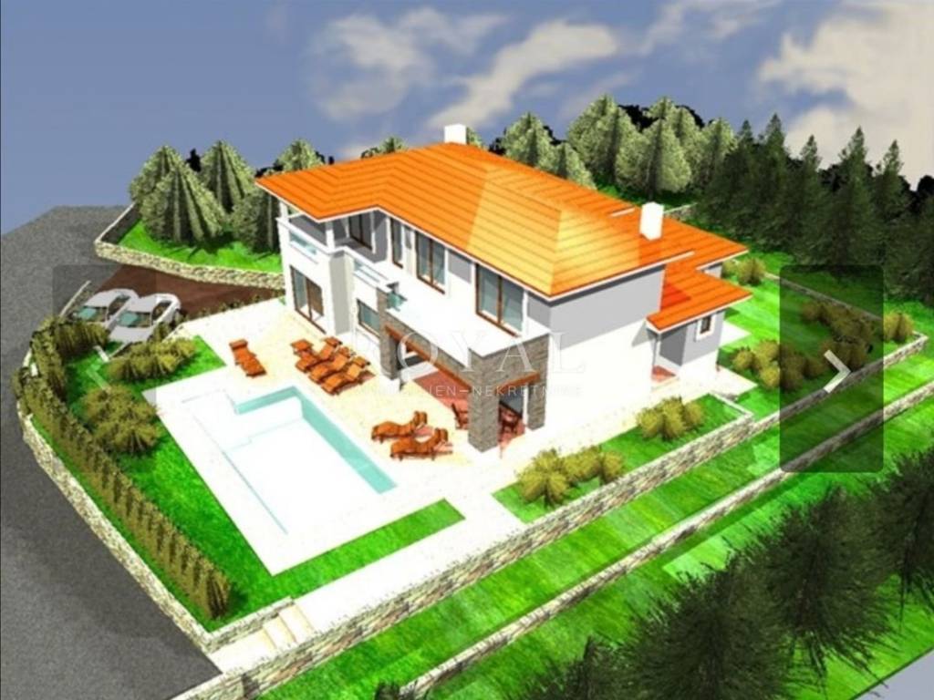 Kostrena - Žuknica, građevisko zemljište 850 m2, građevinska dozvola za oiteljsku kuću s bazenom, suteren, prizemlje i kat 270 m2, plaćen komunalni i vodni doprinos, priključak struje i vode.