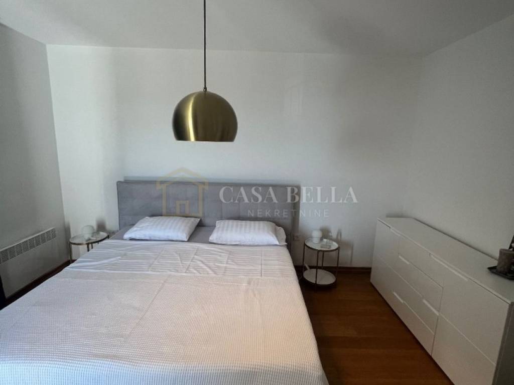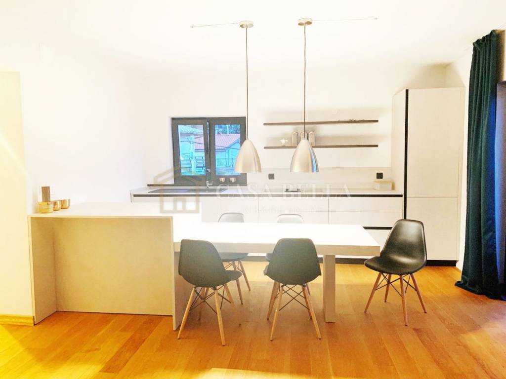 CASA BELLA iz ponude izdvaja stan 104 m2 kompletno namještan s pogledom na more. 2 spavaće sobe, kuhinja s dnevnim boravkom. Kupaonica i extra toalet za goste. Stan ima svoje parkinge, grill i vrt.