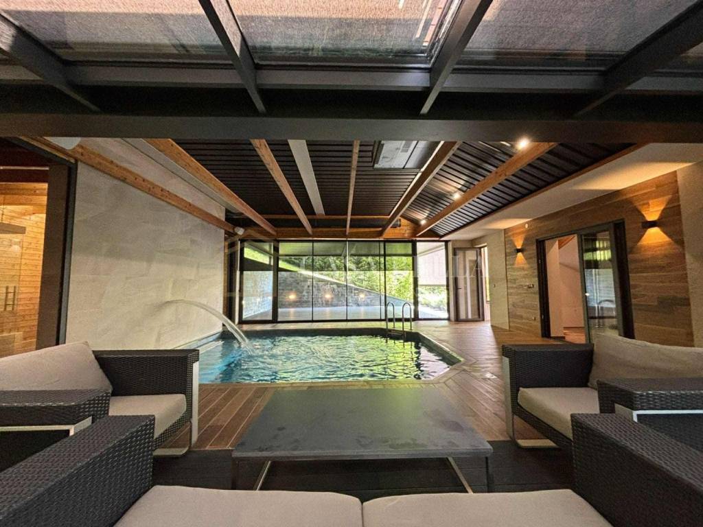 Na drugoj etaži nalaze se spavaće sobe s elegantnim kupaonicama i direktnim pristupom privatnoj spa zoni – uključujući bazen, saunu, prostor za masaže i zimski vrt. Sunčana terasa pruža panoramski pogled i osjećaj potpune osame.