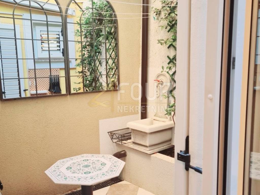 Prodaje se stan s pripadajućim studio apartmanom, ukupne korisne površine približno 108 m2, smješten u mirnom okruženju, svega desetak minuta hoda od mora. U naravi, nekretnina funkcionira kao komforan 3S+DB stan s dodatnim studio apartmanom u dvorištu, dok je prema vlasničkom listu evidentiran stan površine 84,36 m2, rasporeda 2S+DB.
