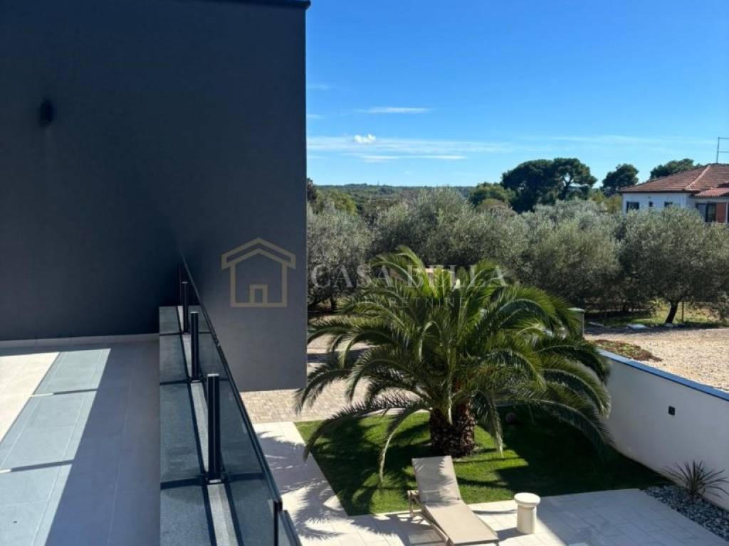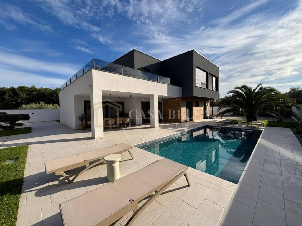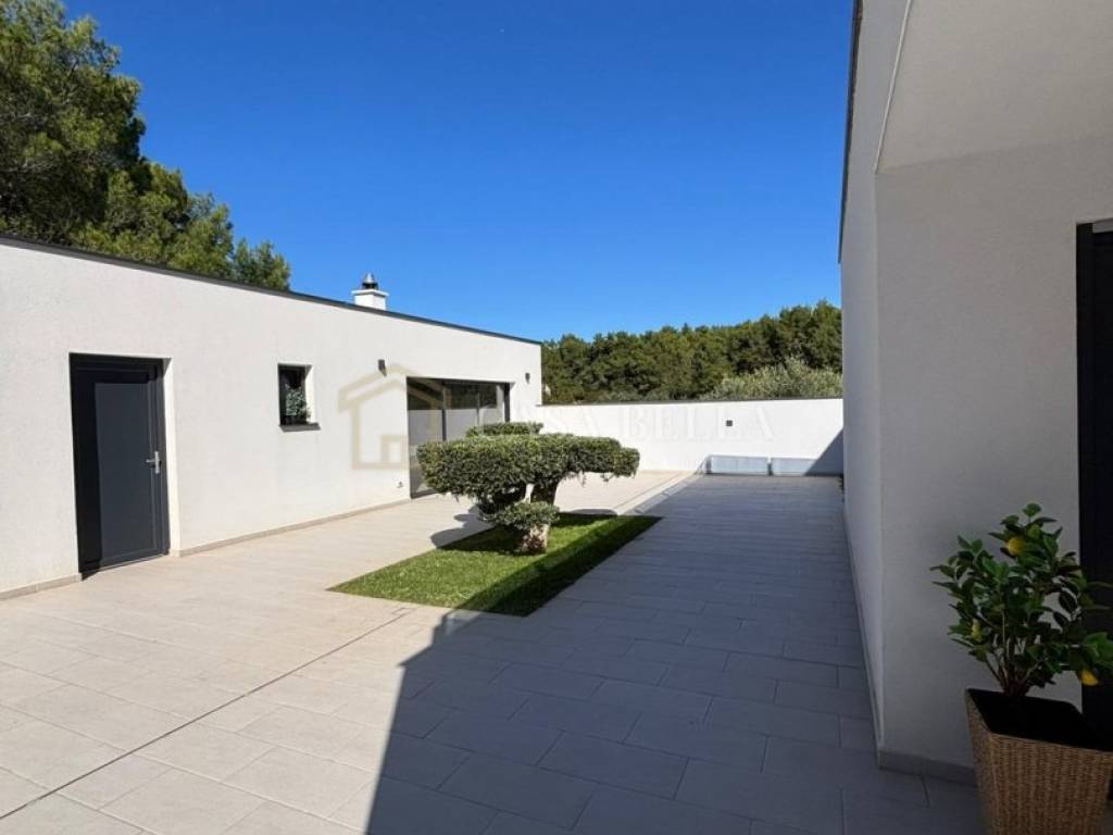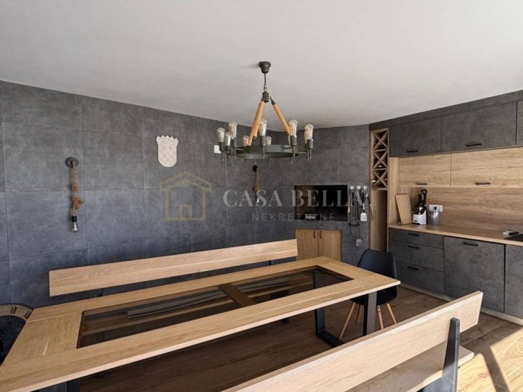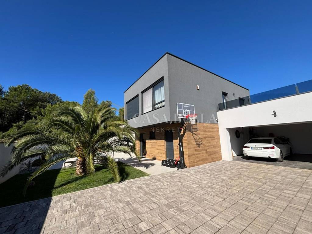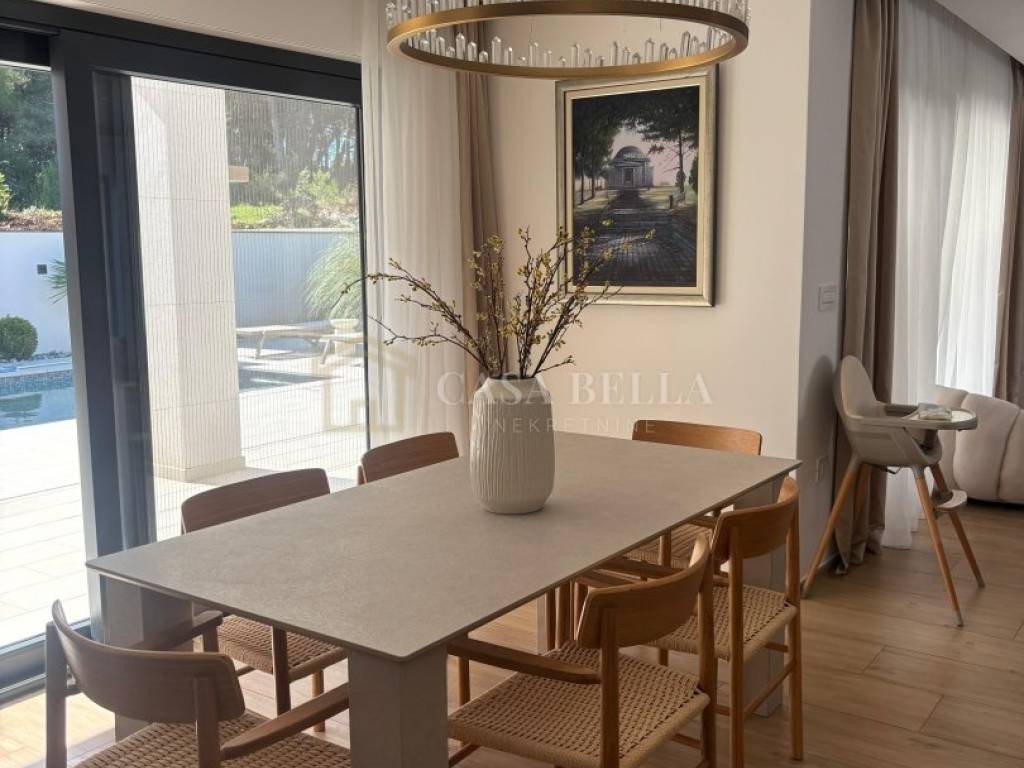 Ostale karakteristike: • Grijani bazen 8.5 x 3.5 m • Podno vodeno grijanje u cijeloj kući • Ljetna kuhinja/zimsku bašta s WC-om i klimom • Garaža za 2 automobila + 2 vanjska parkirna mjesta • Vanjski spremišni prostor