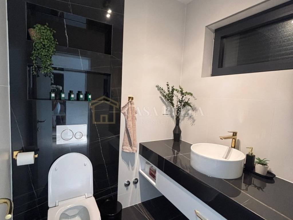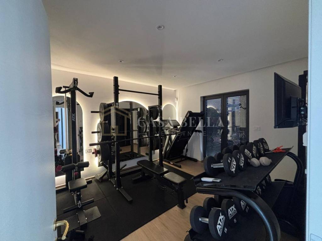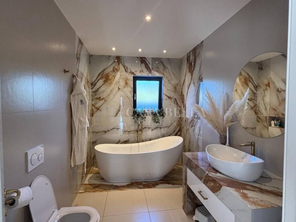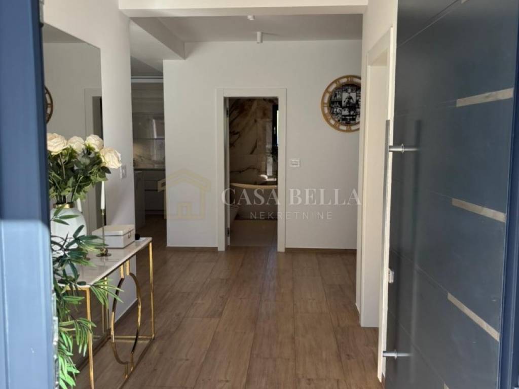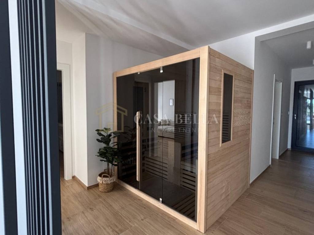 Kat (gornja etaža): • 1 master spavaća soba s walk-in ormarom • 2 dječje sobe • Mala teretana i sauna • Kupaonica s tušem