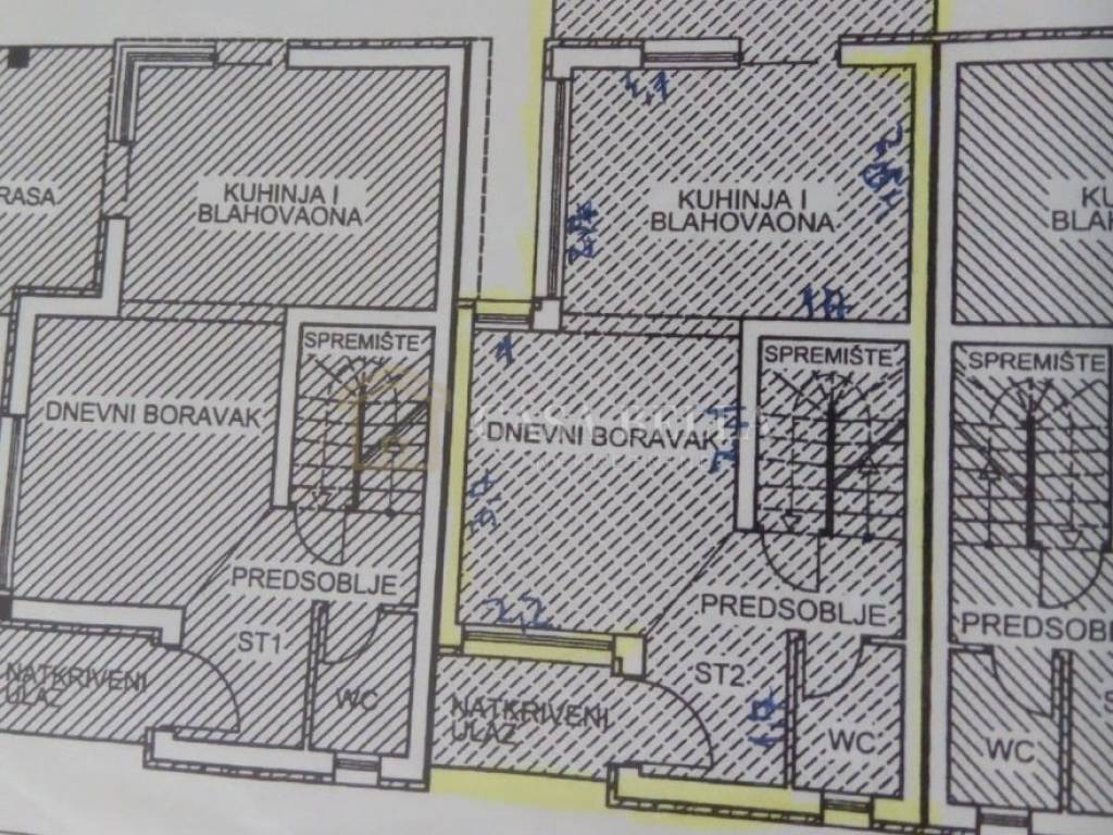 - prizemlje: ulazni hodnik,wc,spremište,dnevni boravak s kuhinjom i blagavaonicom,izlaz na terasu i privatni vrt