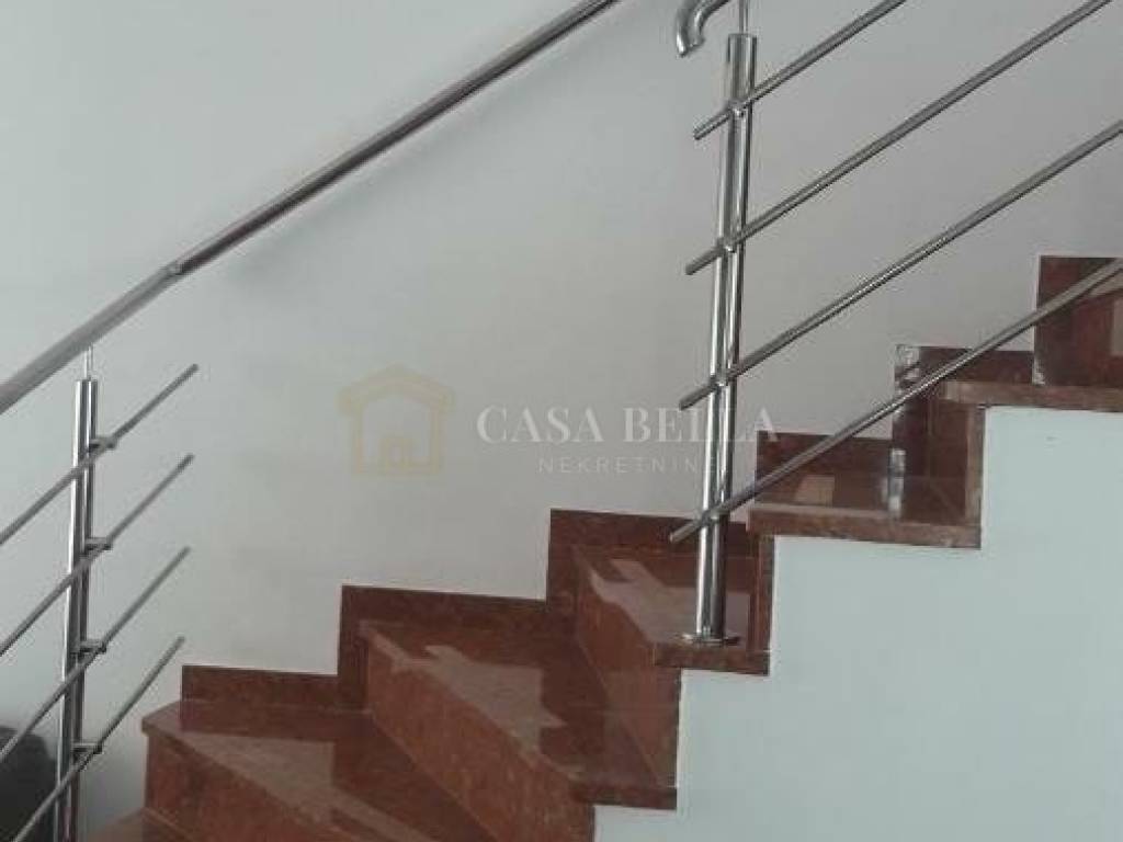Veći stan (120 m²), renoviran 2003. godine, sastoji se od tri spavaće sobe, dnevnog boravka, kuhinje s blagovaonicom, kupaonice i WC-a te terase od 30 m². Grijanje je centralno na pelete.
