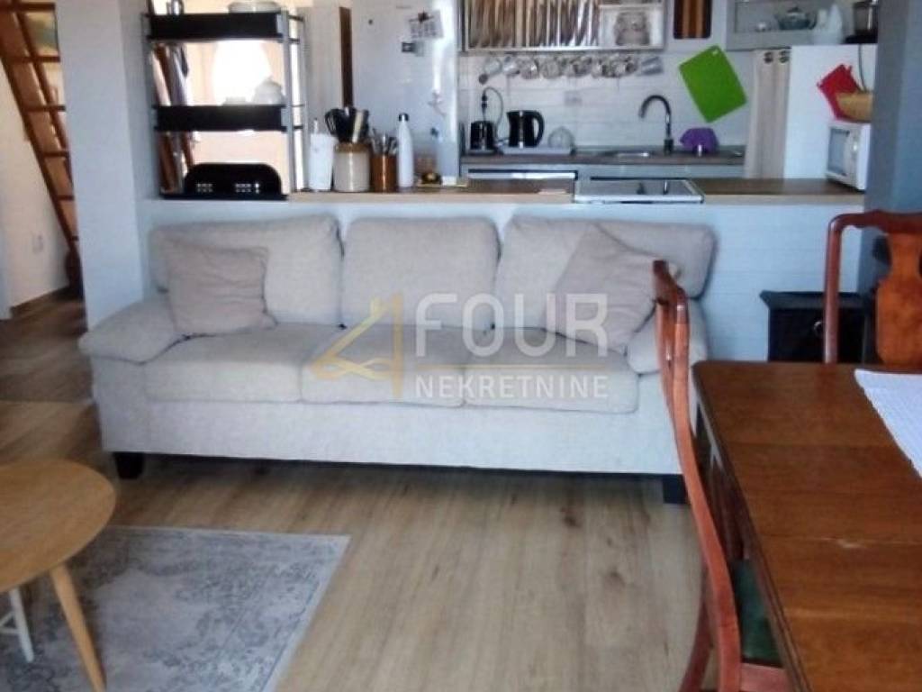 Prizemlje nudi dvoetažni stan s dvije spavaće sobe, dnevnim boravkom, kuhinjom i balkonom od 15.69m2 koja pruža predivan pogled na more. Na gornjoj etaži (visoko potkrovlje) nalazi se prazan prostor s potencijalom za dodatnu adaptaciju, također s pogledom na more.