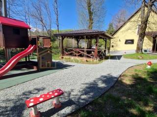Nalazi se na imanju od otprilike 1000 m² u Općini Fužine. Na okućnici se ističu natkrivena terasa, otvorena terasa, prostor s roštiljem, bazen, šetnica, veliko dječje igralište, drvena brvnara za alat i drva te mini botanički vrt. Okućnica je potpuno uređena, čineći ovo mjesto idealnim za uživanje u mirnom životu na planinskom području .
