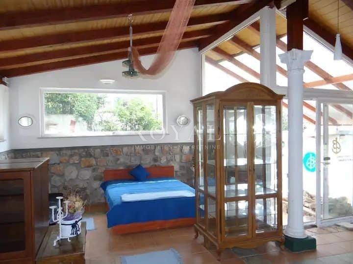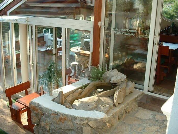 KLENOVICA, NOVI VINODOLSKI, u ponudi je zanimljiva prizemnica sa lijepo uređenom okućnicom. Ukupna stambena površina je 133.98 m2 a uključuje tri prostorije, kupaonu te kuhinju, a zanimljivim građevinskim rješenjem interijer je stopljen sa vanjskim dijelom površine 273 m2 te se nastavlja na uređeni mediteranski vrt i konobu sa kompletno i kvalitetno uređenom kuhinjom i mjestom za druženje sa velikim roštiljem odnosno pekom. Četiri su parkirna mjesta također na okućnici.