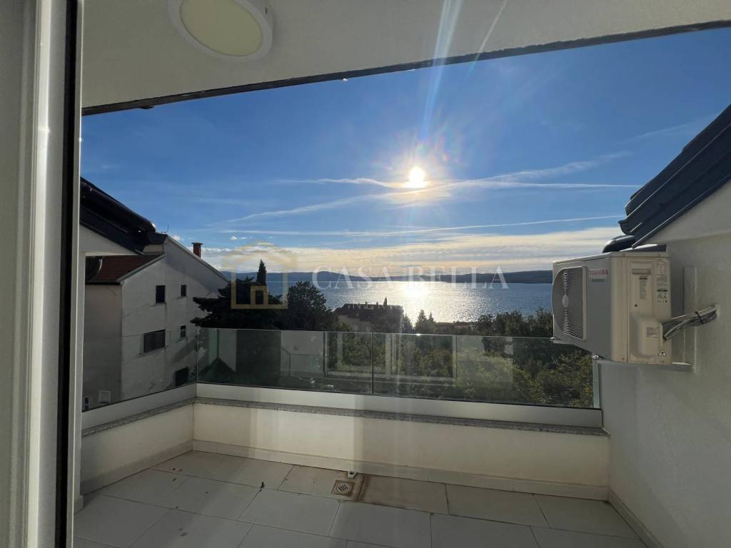 CASA BELLA iz ponude izdvaja stan u novogradnji na atraktivnoj lokaciji u Crikvenici, samo 150 metara od mora. Smješten na trećem, ujedno i posljednjem katu moderne zgrade, stan nudi predivan pogled na more. Južna orijentacija osigurava obilje prirodnog svjetla tijekom cijelog dana.
