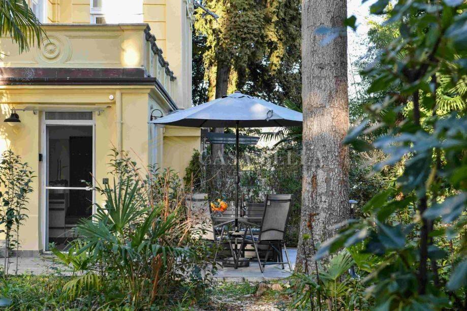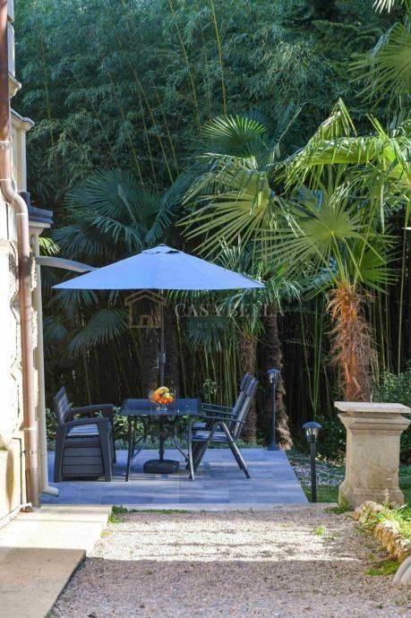 Stan ima vlastitu terasu koja se nalazi u okruženju njegovane okućnice s biljkama poput bambusa i palmi, a iz nje se pruža izlaz u poznati opatijski park.