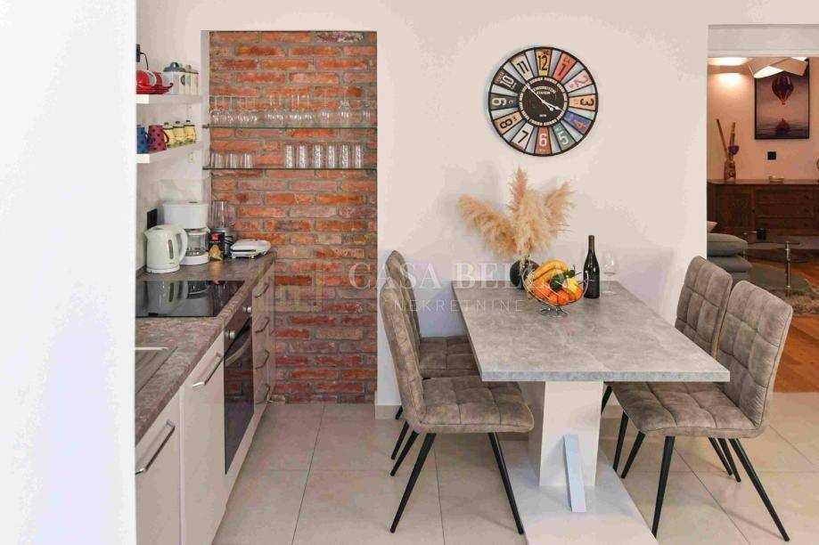 Prodaje se u potpunosti namješten, što ga čini spremnim za život ili turističko iznajmljivanje. Zahvaljujući atraktivnoj lokaciji, stan postiže odlične rezultate u najmu tijekom cijele godine, uz visoke ocjene i pozitivne recenzije gostiju.