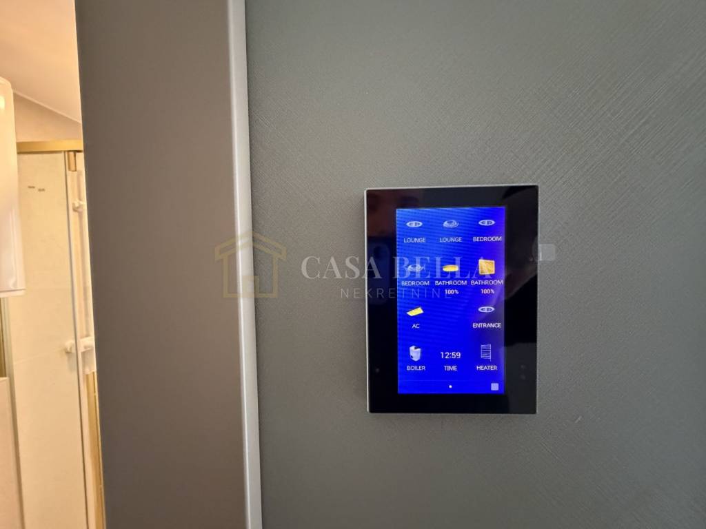 Apartmani su opremljeni pametnim sustavom upravljanja koji omogućuje potpunu kontrolu putem mobilne aplikacije – grijanje, hlađenje, rasvjeta, bojler i kupaonski radijatori. Cijeli objekt pokriven je video nadzorom, a stanovi su dodatno osigurani senzorima za prepoznavanje otvorenih prozora i vrata, što pruža visoku razinu sigurnosti i energetsku učinkovitost.